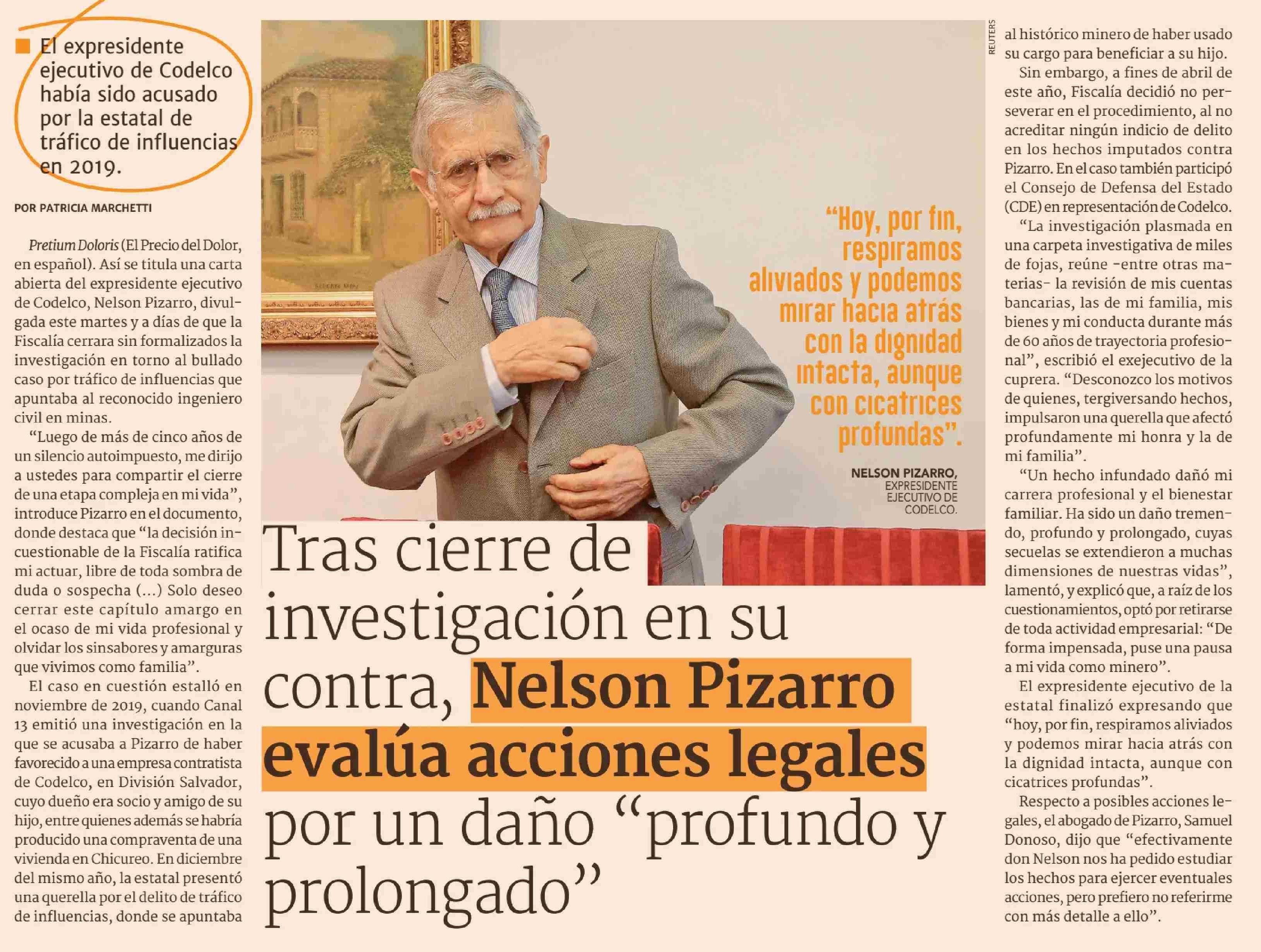 Tras cierre de investigación en su contra, Nelson Pizarr evalúa acciones legales por un daño “profundo y prolongado” 04-06-2025 Diario Financiero |