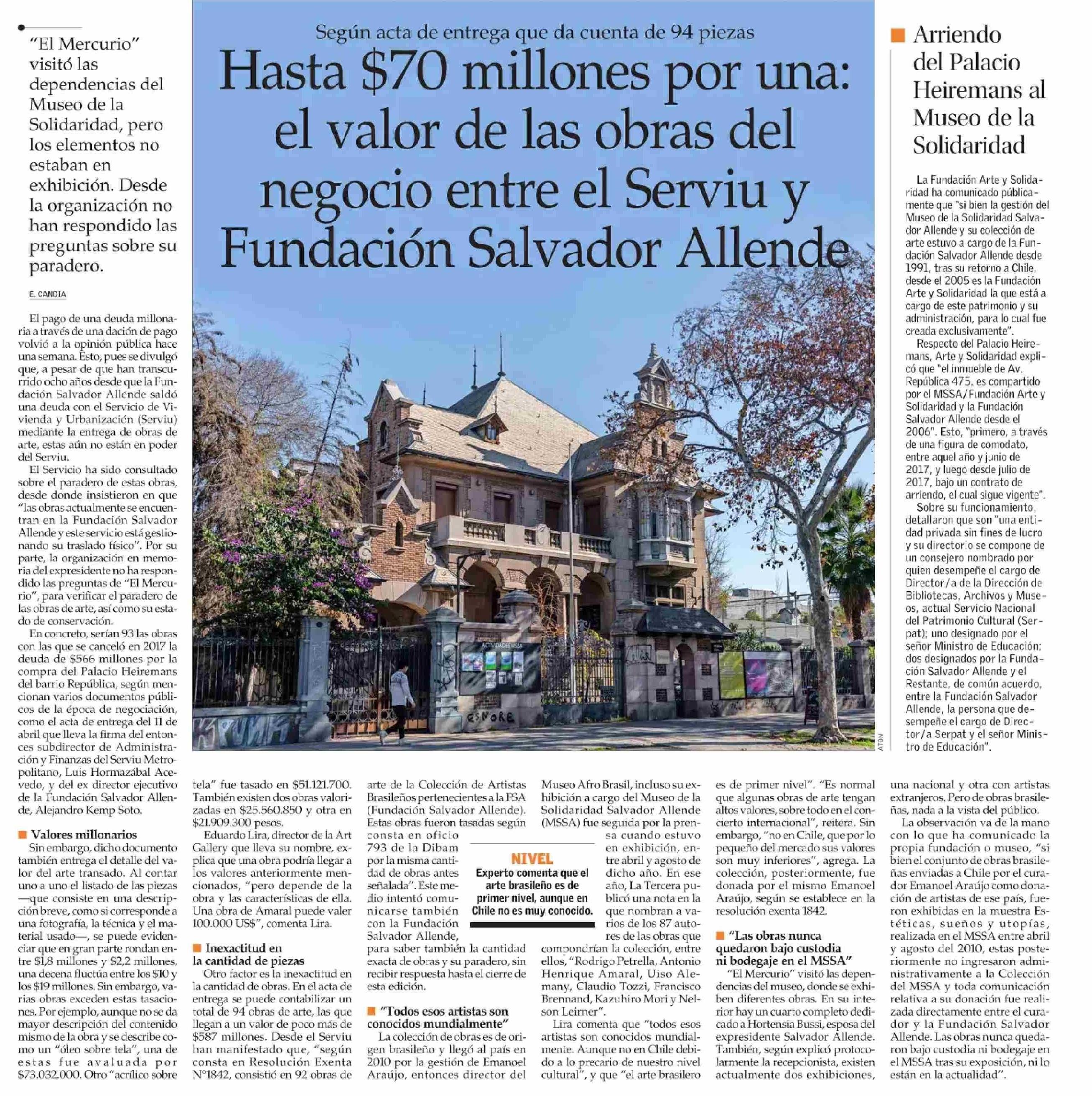 Hasta $70 millones por una: el valor de las obras del negocio entre el Serviu y Fundación Salvador Allende: 14-06-2025 El Mercurio |