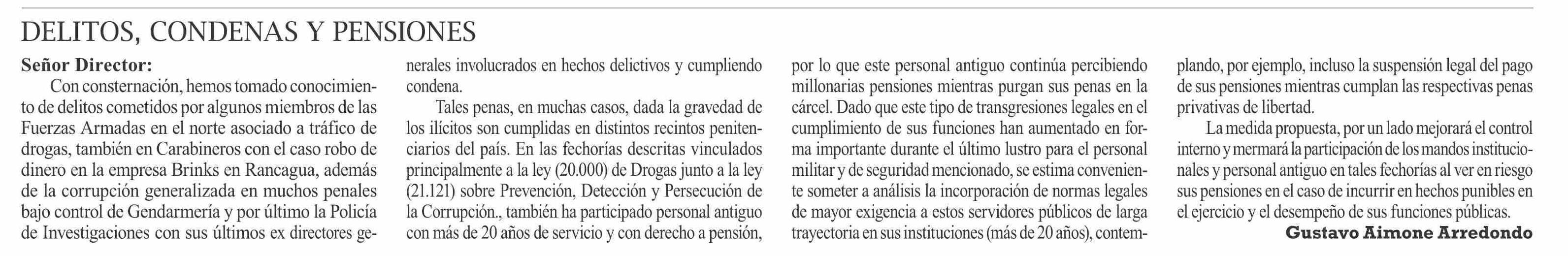 Cartas: DELITOS, CONDENAS Y PENSIONES