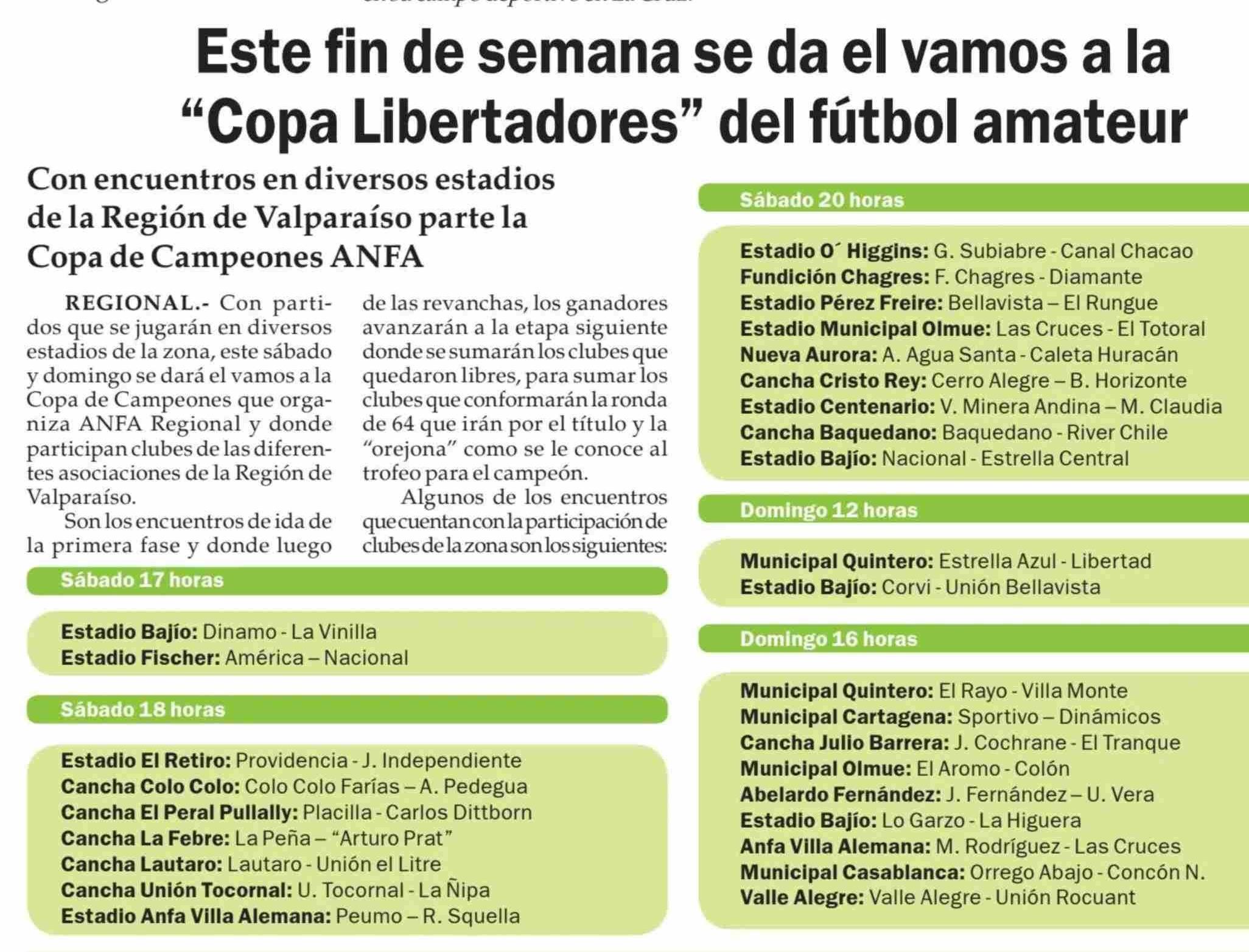 | Título: | Este fin de semana se da el vamos a la "Copa Libertadores" del fútbol amateur |