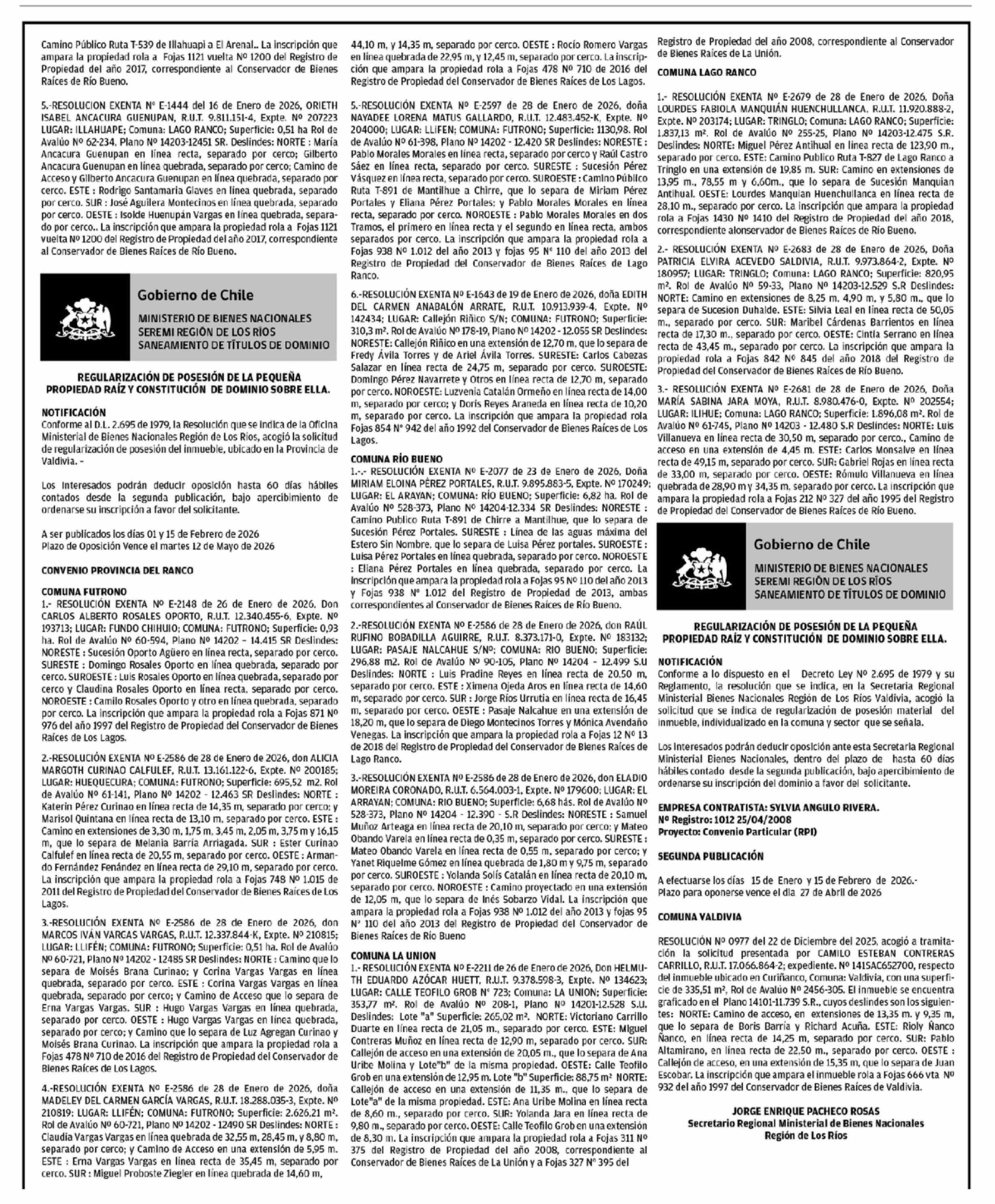 PUBLICIDAD 15-02-2026 Diario Austral Región de Los Ríos |