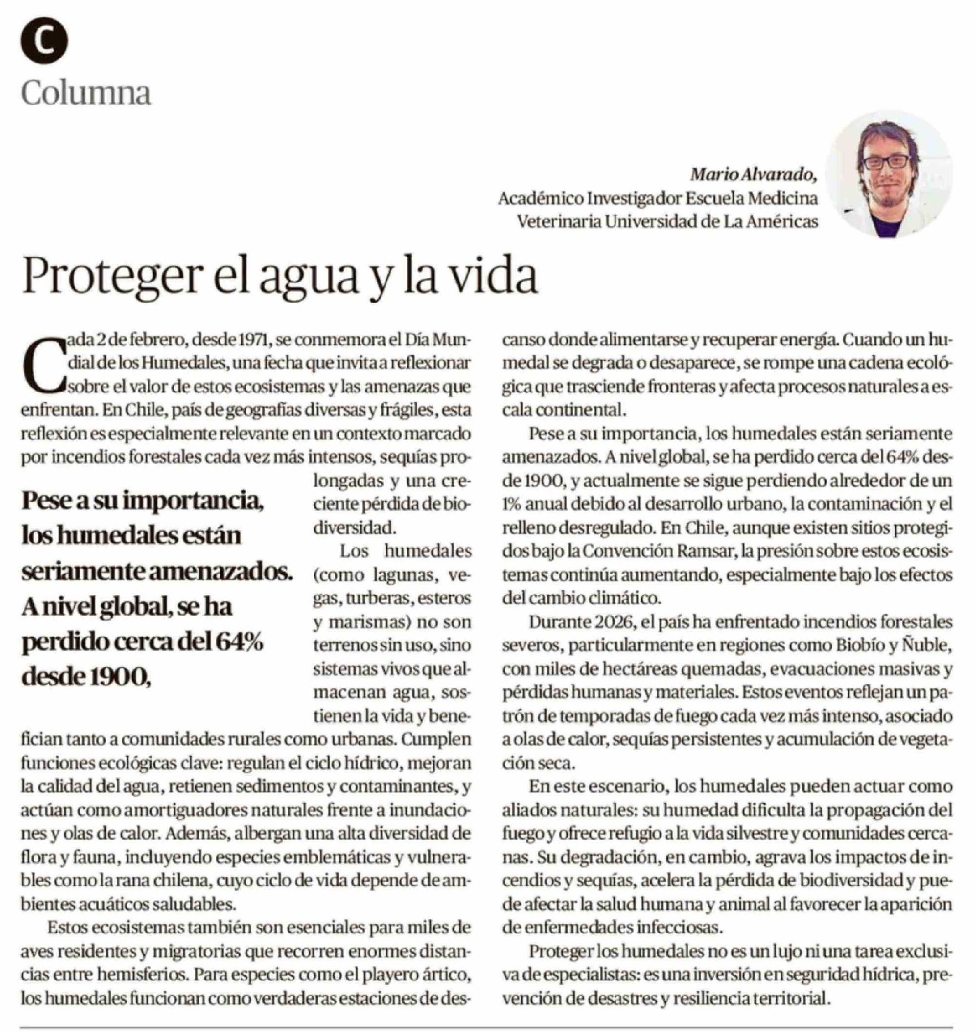 Columnas de Opinión: Proteger el agua y la vida 10-02-2026 Crónica de Chillán |
