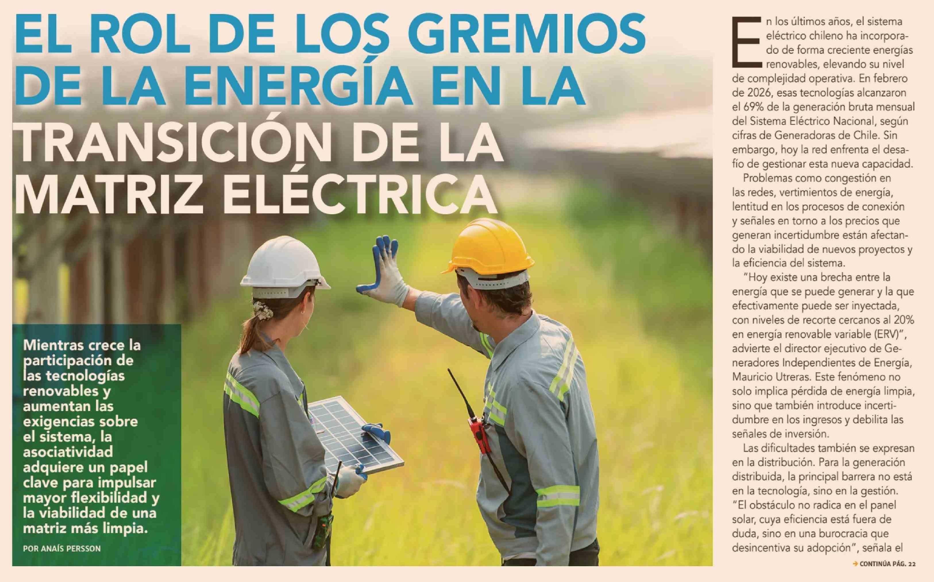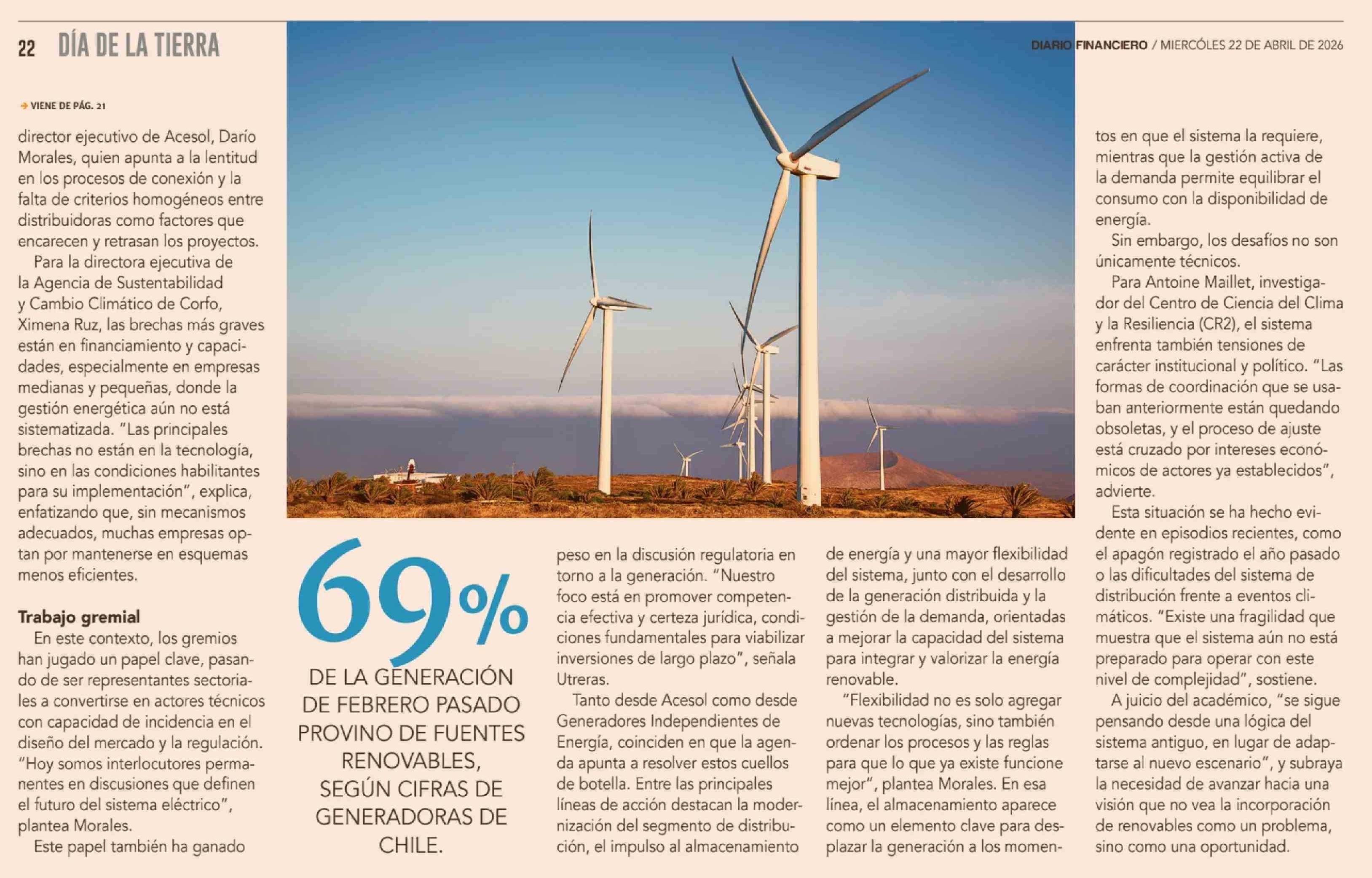 EL ROL DE LOS GREMIOS DE LA ENERGIA EN LA TRANSICIÓN DE LA MATRIZ ELECTRICA 22-04-2026 Diario Financiero |