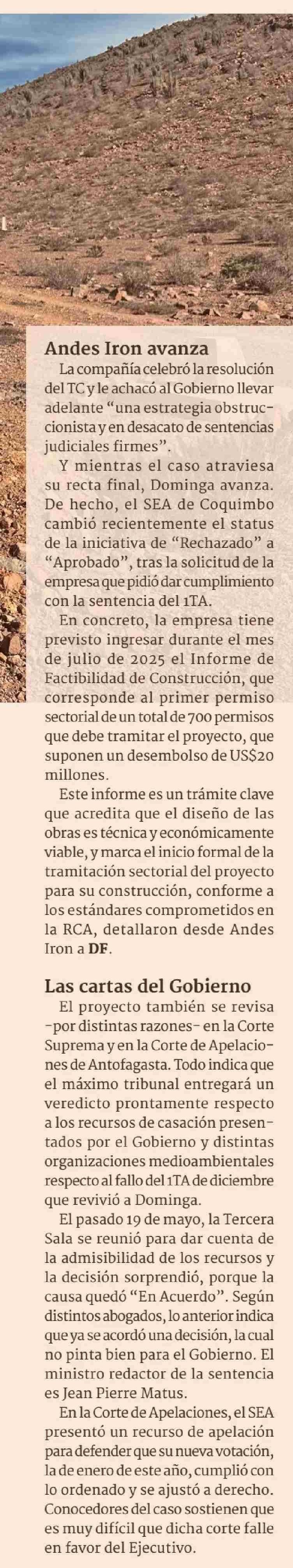 Título: Fallo del TC allana el camino para Dominga y empresa iniciará en julio trámite clave para construcción del proyecto