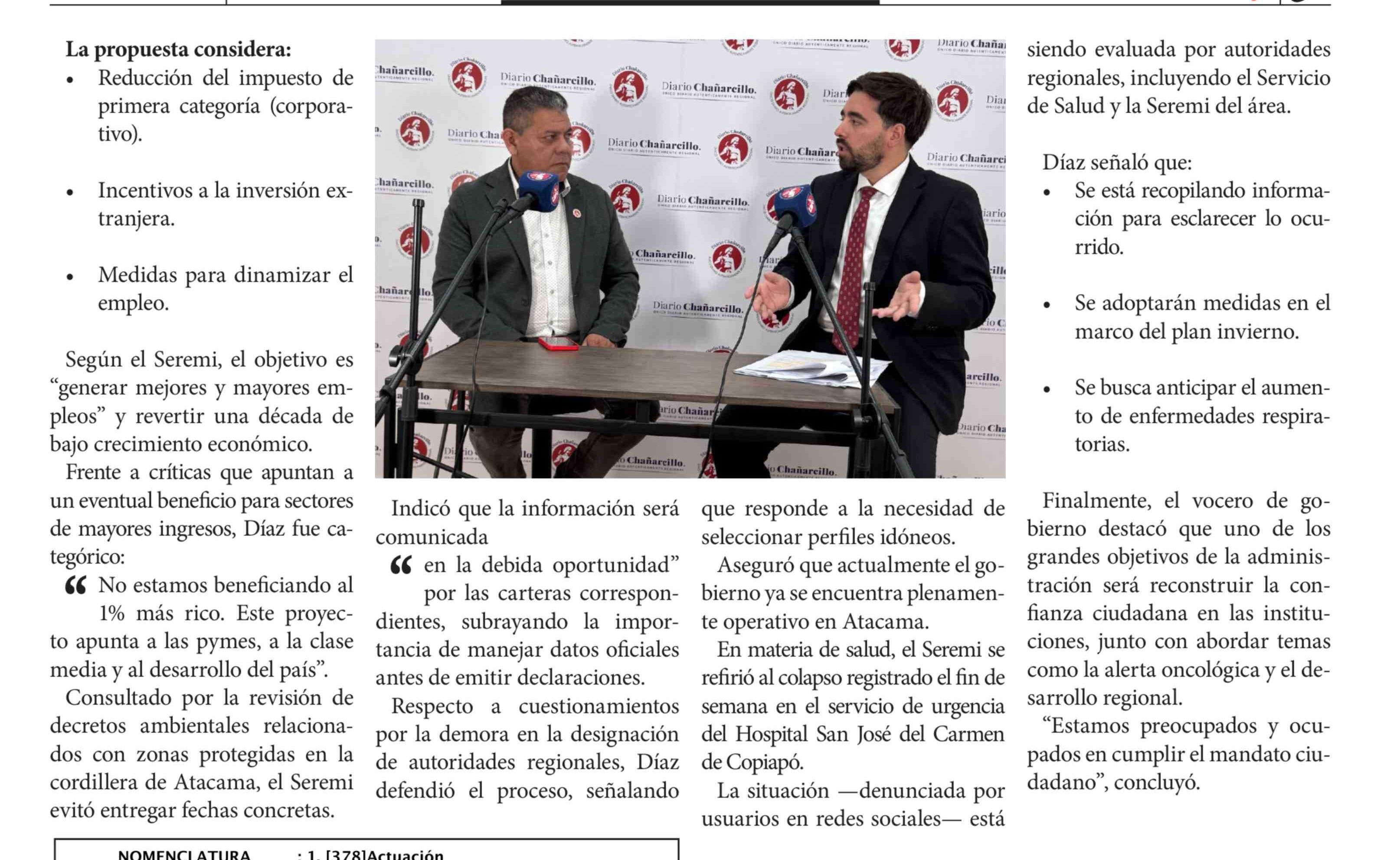 Título: Nuevo Seremi de Gobierno de Atacama detalla agenda en seguridad escolar, economía y salud regional