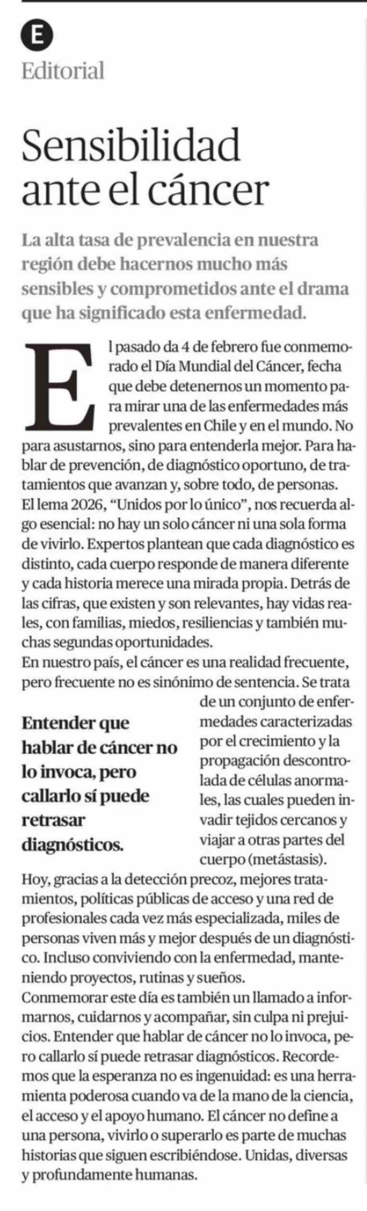 Editorial: Sensibilidad ante el cáncer