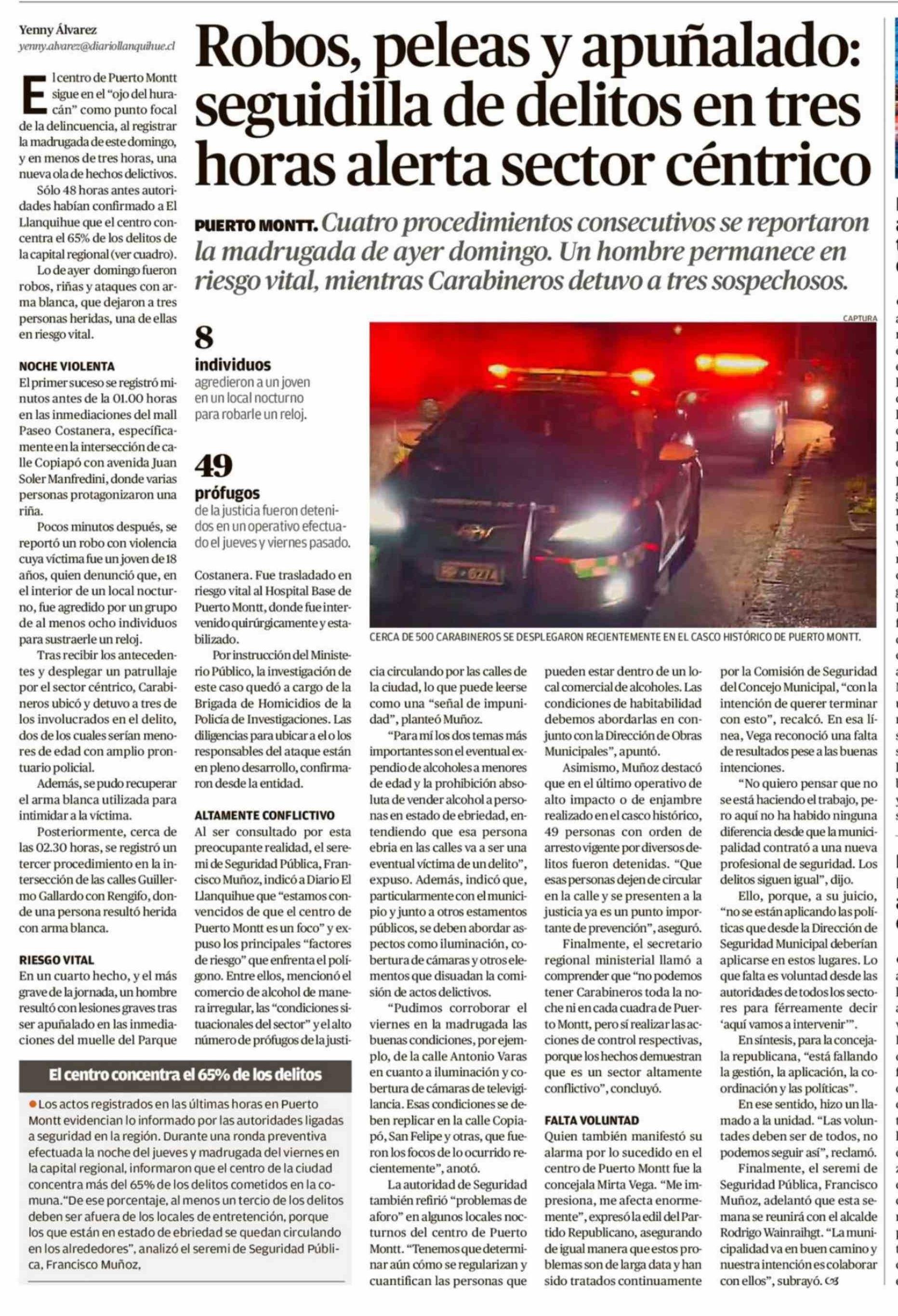 Robos, peleas y apuñalado: seguidilla de delitos en tres horas alerta sector céntrico 06-04-2026 El Llanquihue |
