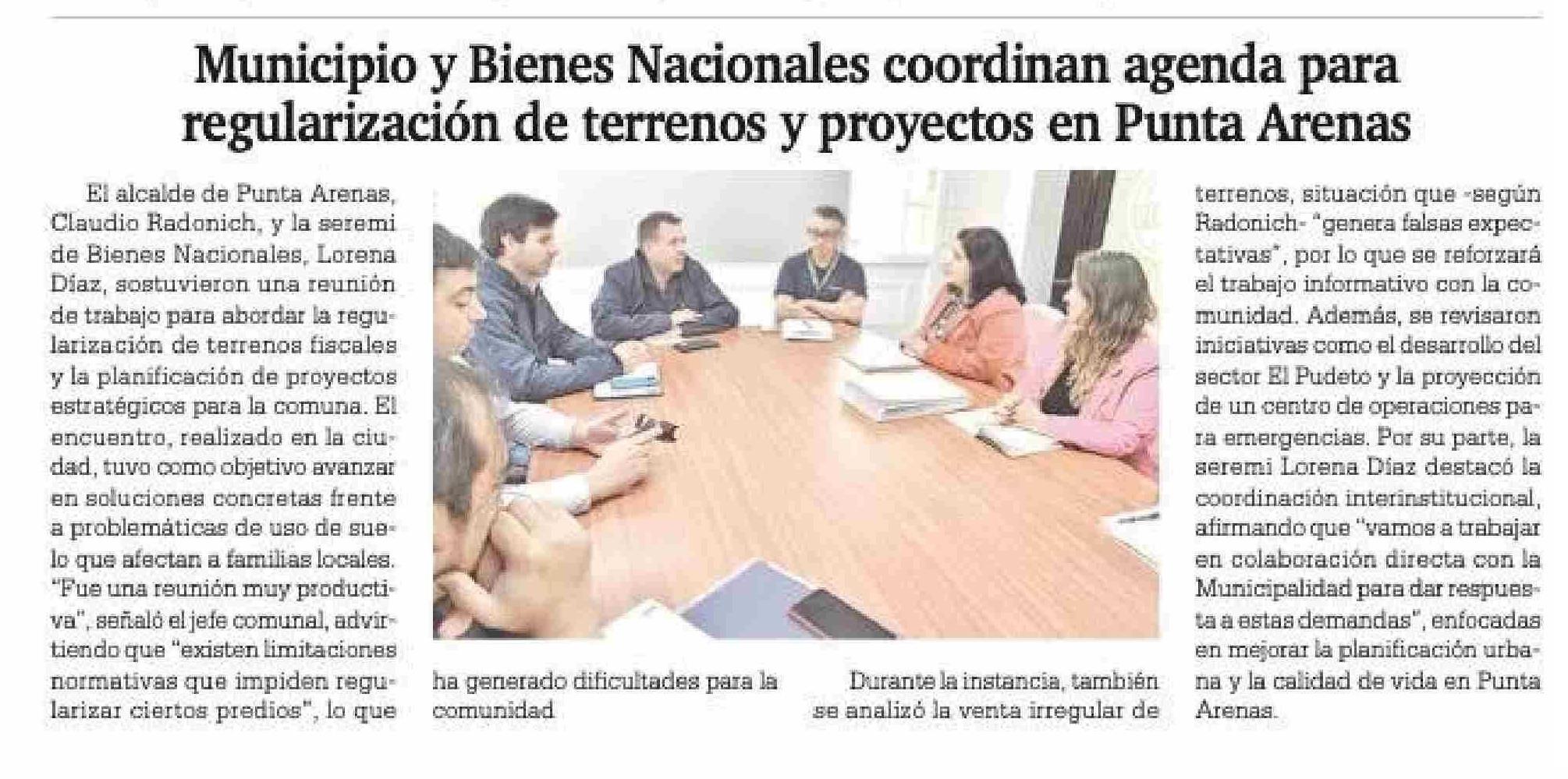 Municipio y Bienes Nacionales coordinan agenda para regularización de terrenos y proyectos en Punta Arenas 24-04-2026 La Prensa Austral |