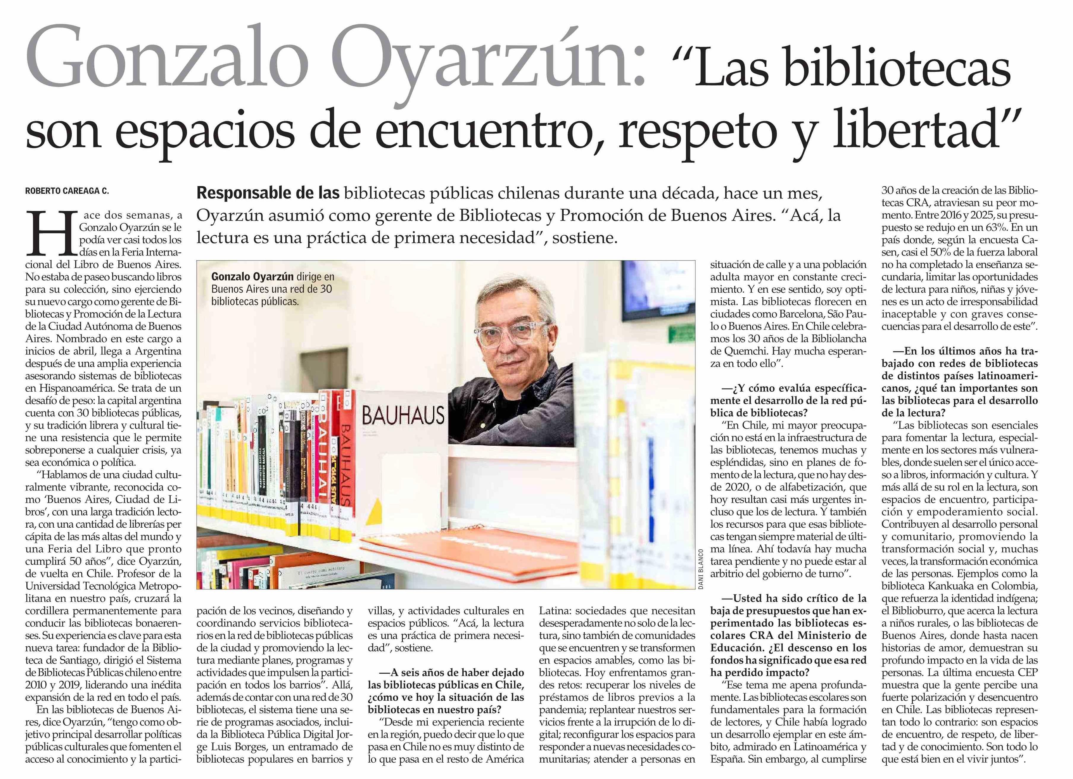 Gonzalo Oyarzún: “Las bibliotecas son espacios de encuentro, respeto y libertad” 12-05-2025 El Mercurio |