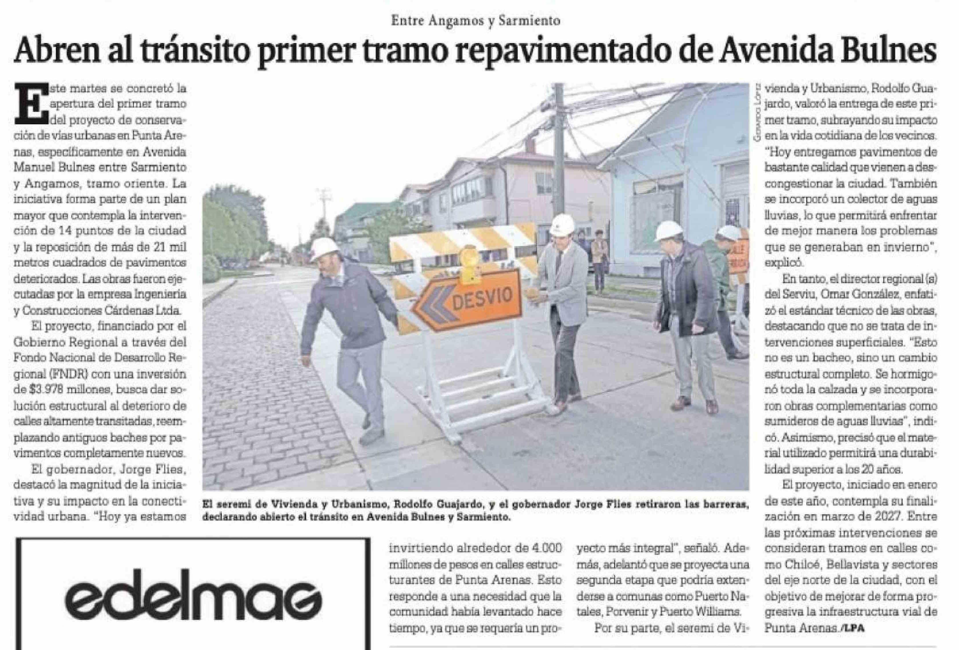 Abren al tránsito primer tramo repavimentado de Avenida Bulnes 01-04-2026 La Prensa Austral |