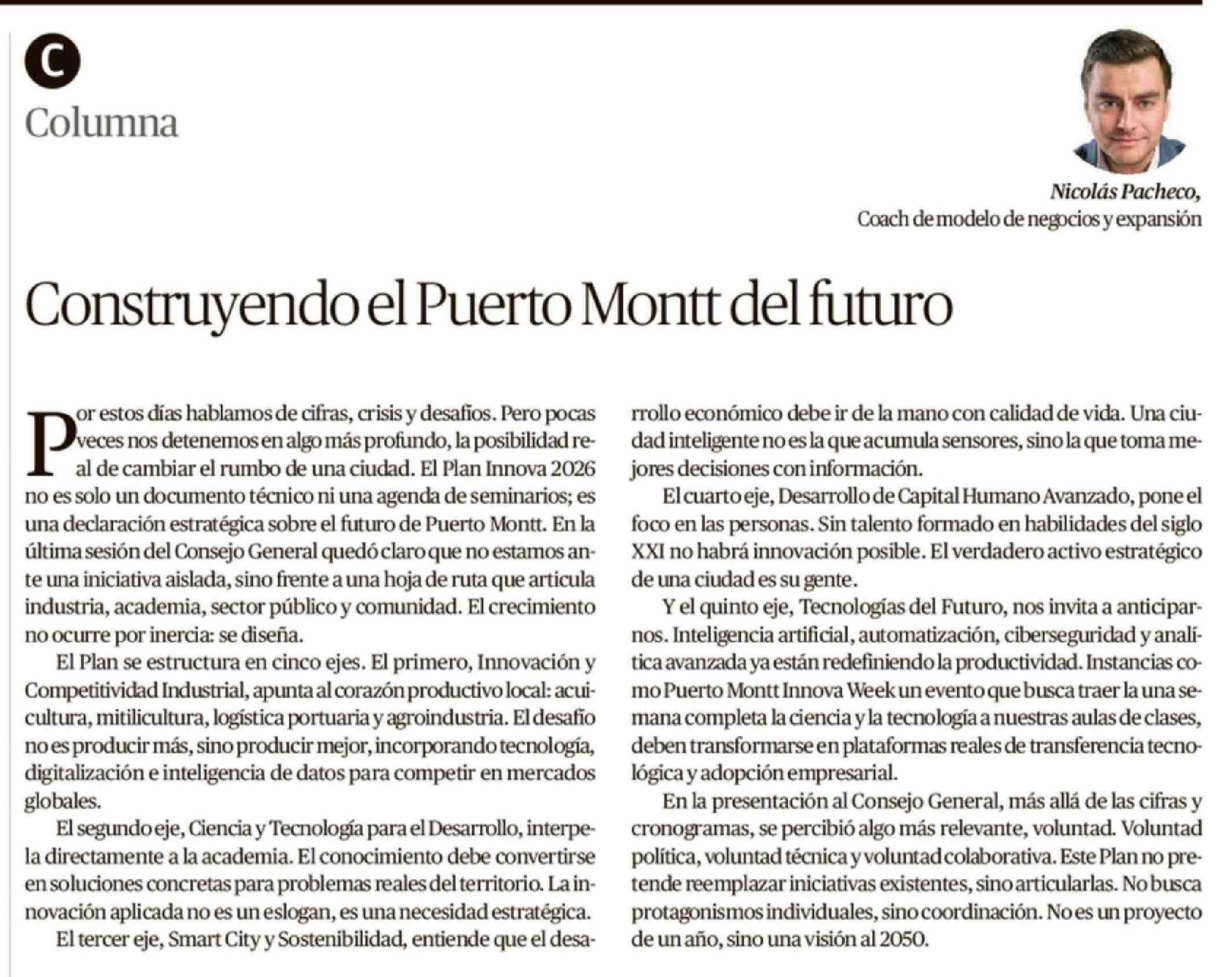 Título: Columnas de Opinión: Construyendo el Puerto Montt del futuro