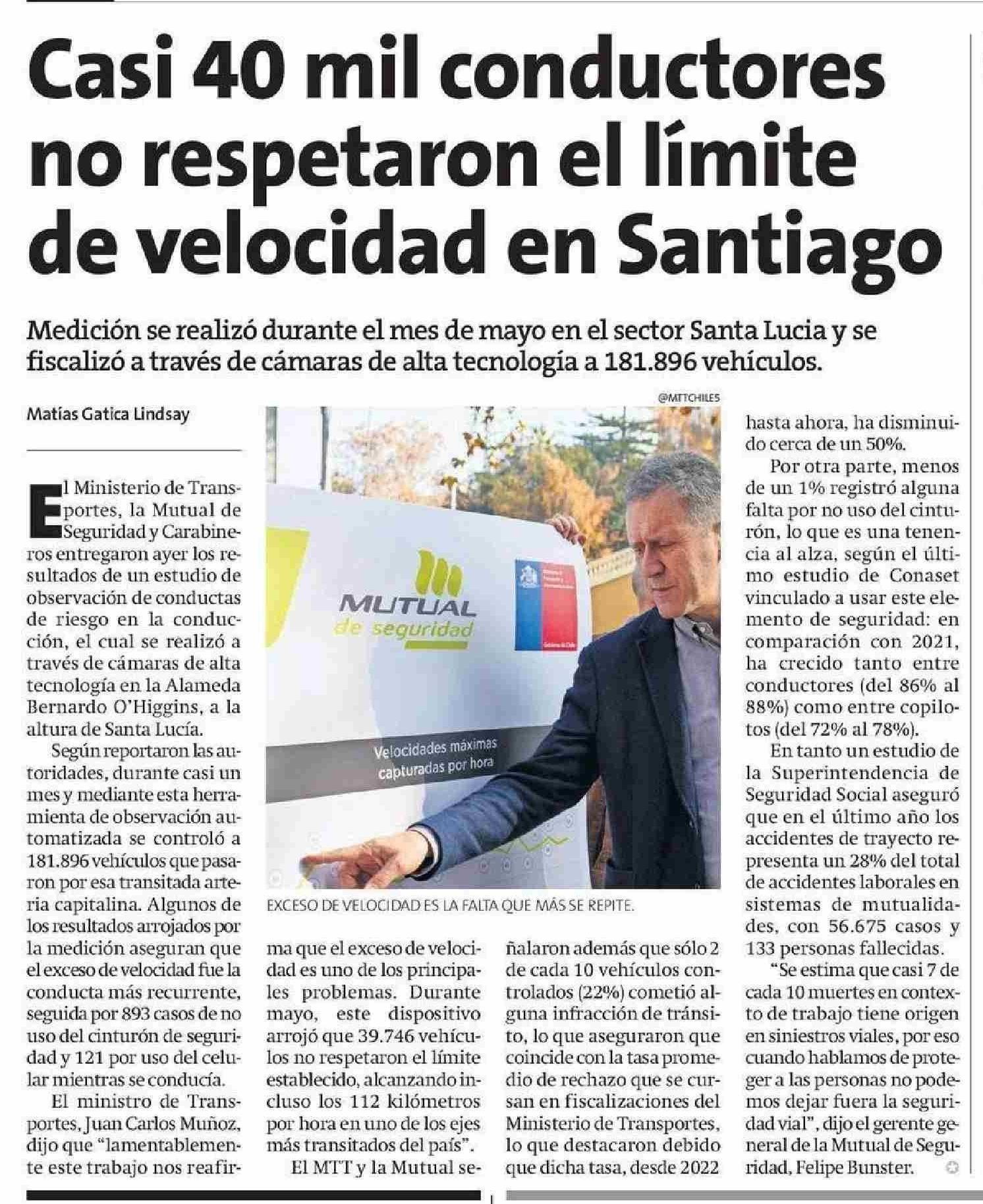 Casi 40 mil conductores no respetaron el límite de velocidad en Santiago 07-06-2025 La Estrella de Iquique |