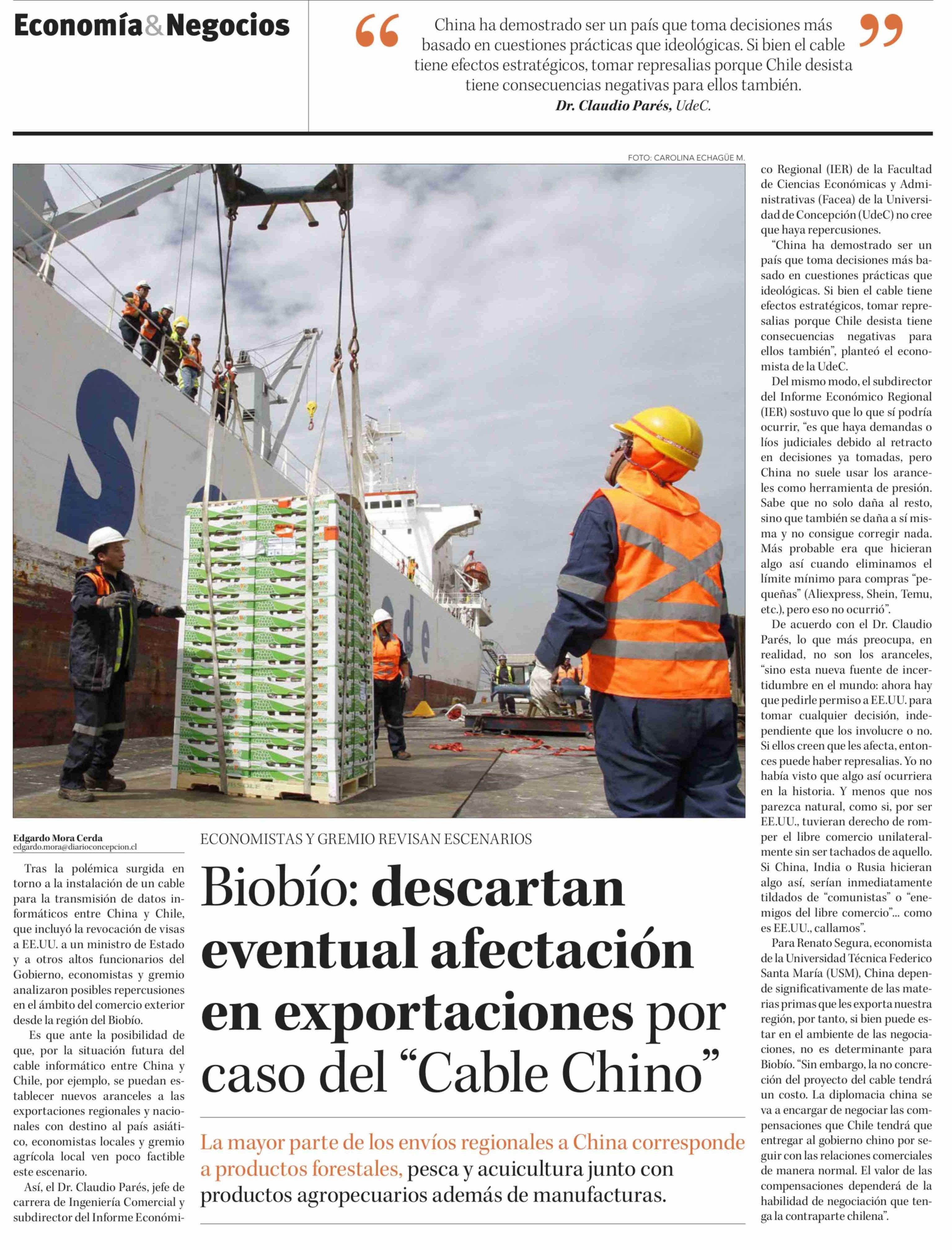 Título: Biobío: descartan eventual afectación en exportaciones por caso del "Cable Chino"