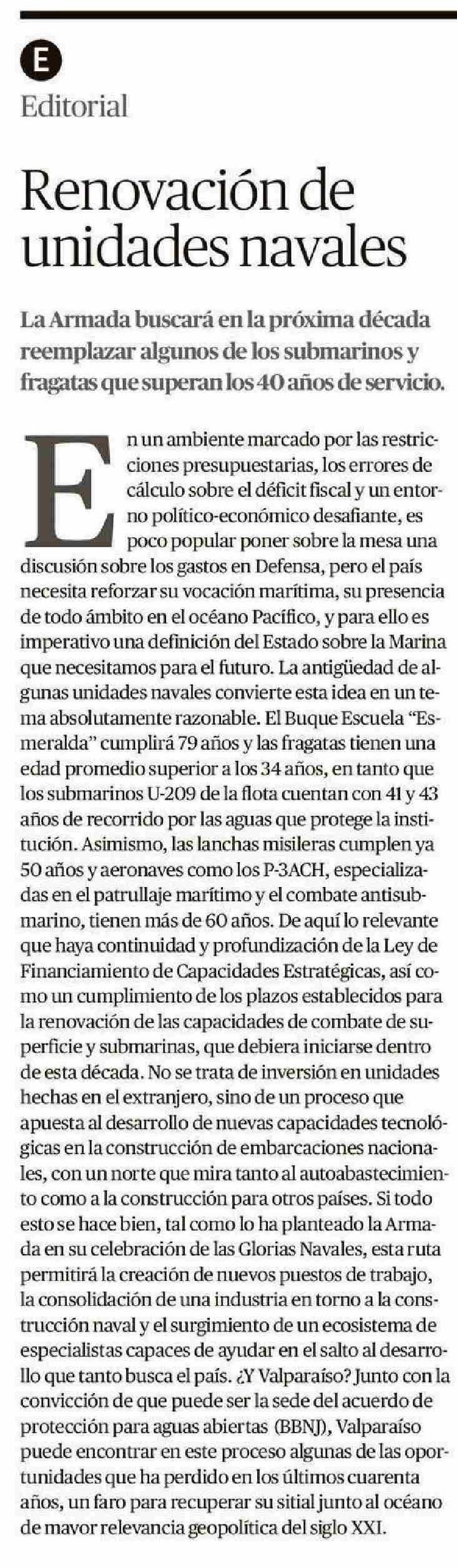 Editorial: Renovación de unidades navales 27-05-2025 El Mercurio de Valparaíso |