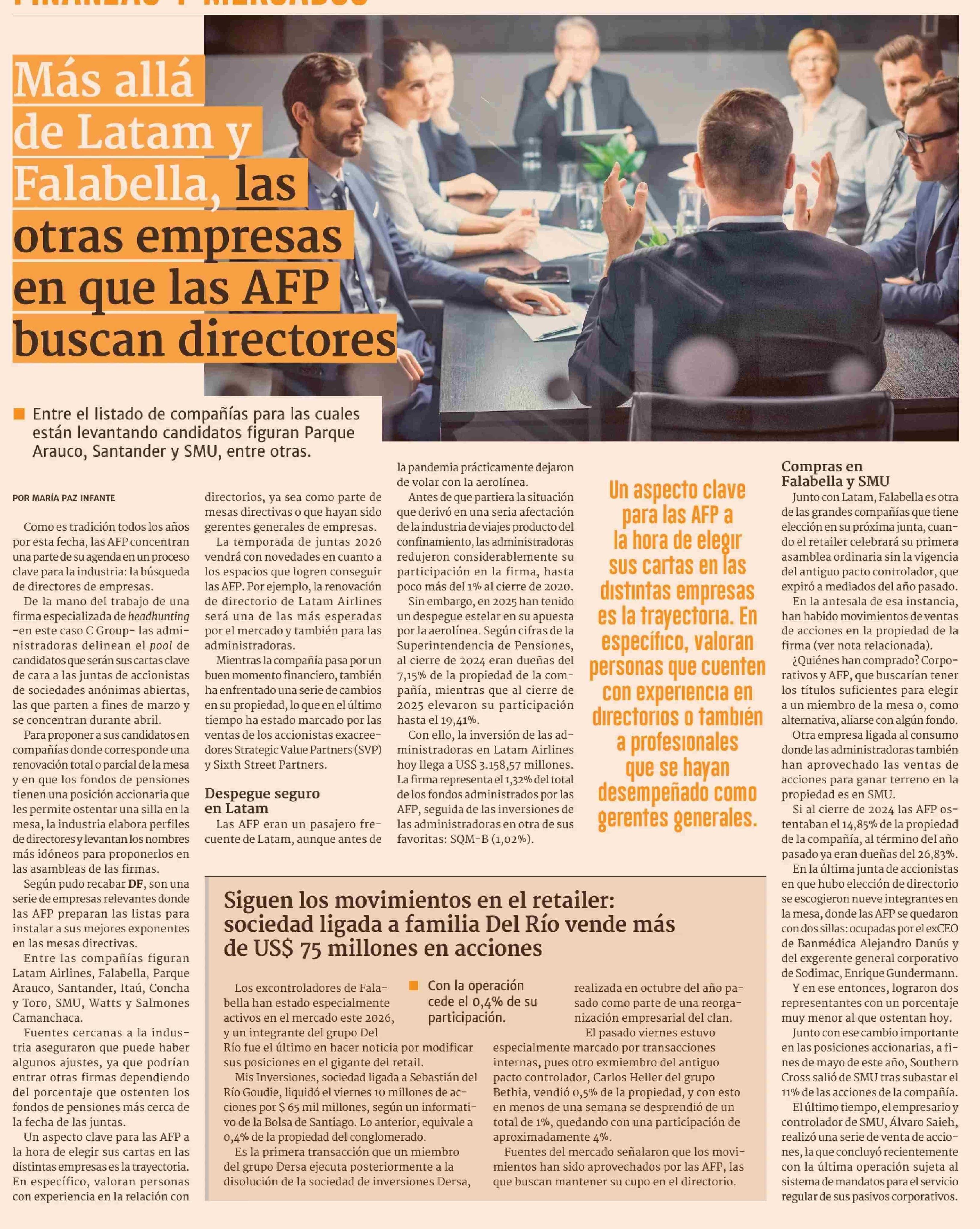 Título: Más allá de Latam y Falabella, las otras empresas en que las AFP buscan directores