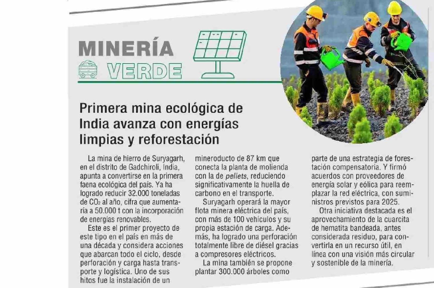 Primera mina ecológica de India avanza.con energías limpias y reforestación 17-06-2025 El Mercurio |
