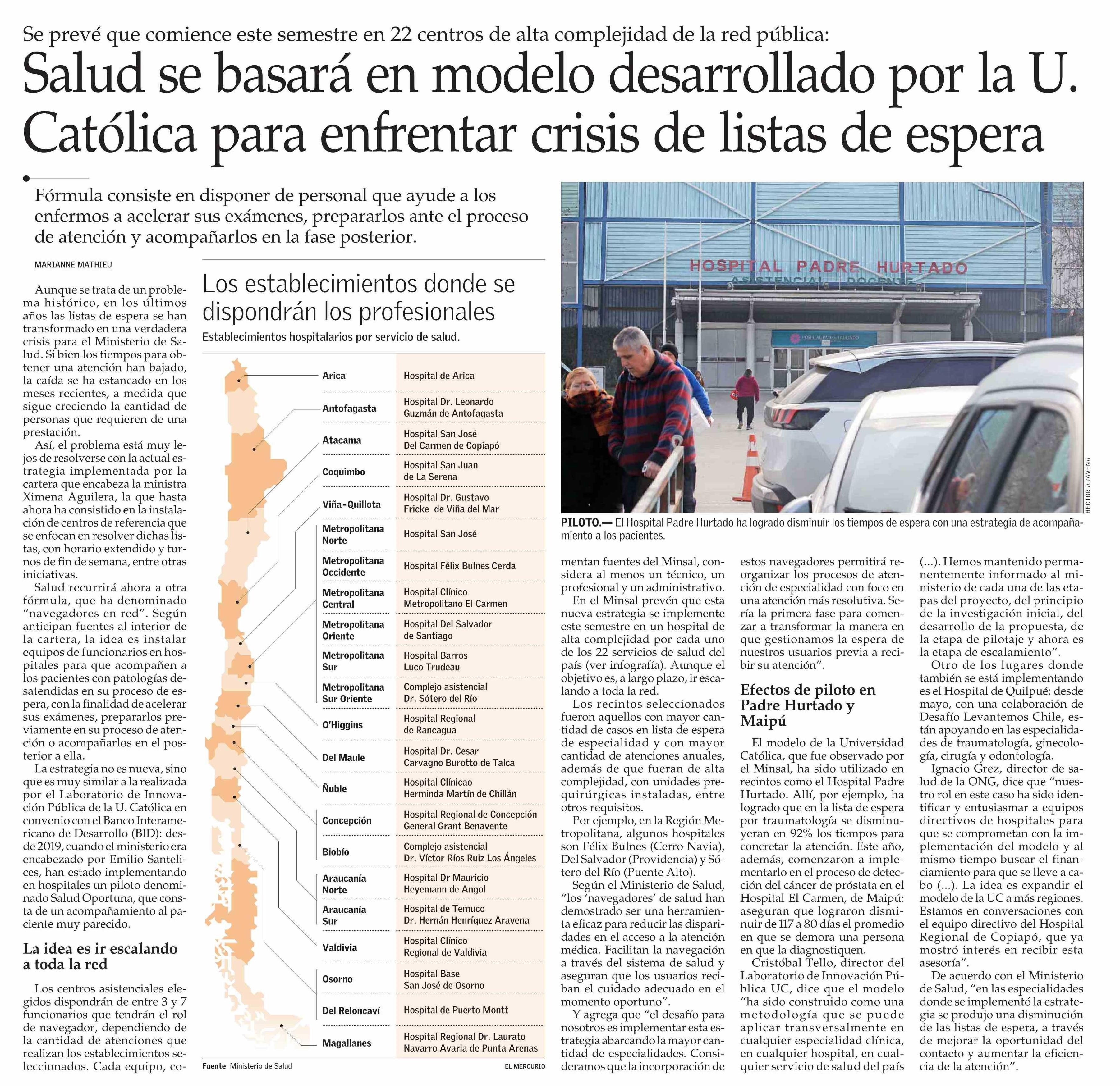 Salud se basará en modelo desarrollado por la U. Católica para enfrentar crisis de listas de espera 14-07-2024 El Mercurio |