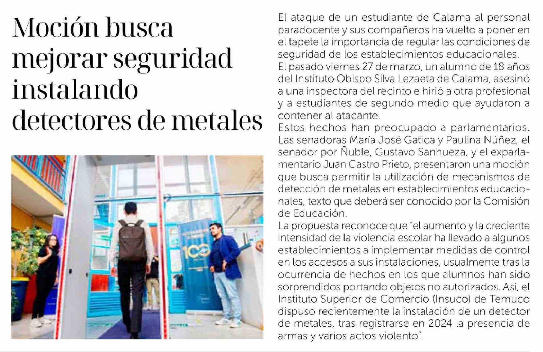 | Título: | Moción busca mejorar seguridad instalando detectores de metales |