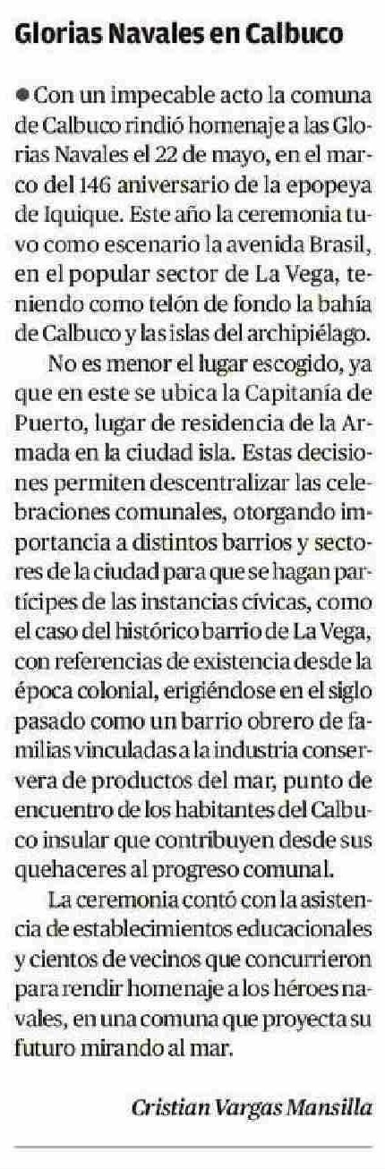 CARTAS: Glorias Navales en Calbuco 27-05-2025 El Llanquihue |