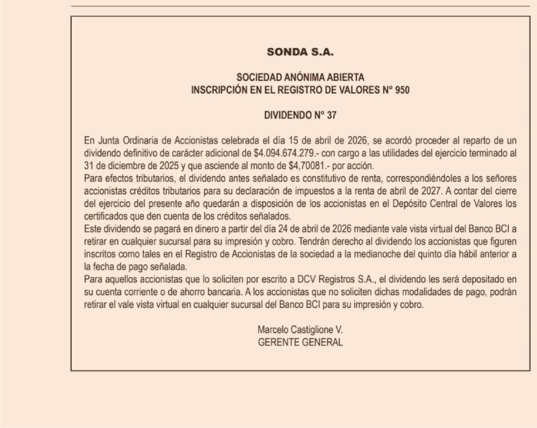 EXTRACTOS: SONDA S.A. 16-04-2026 Diario Financiero |