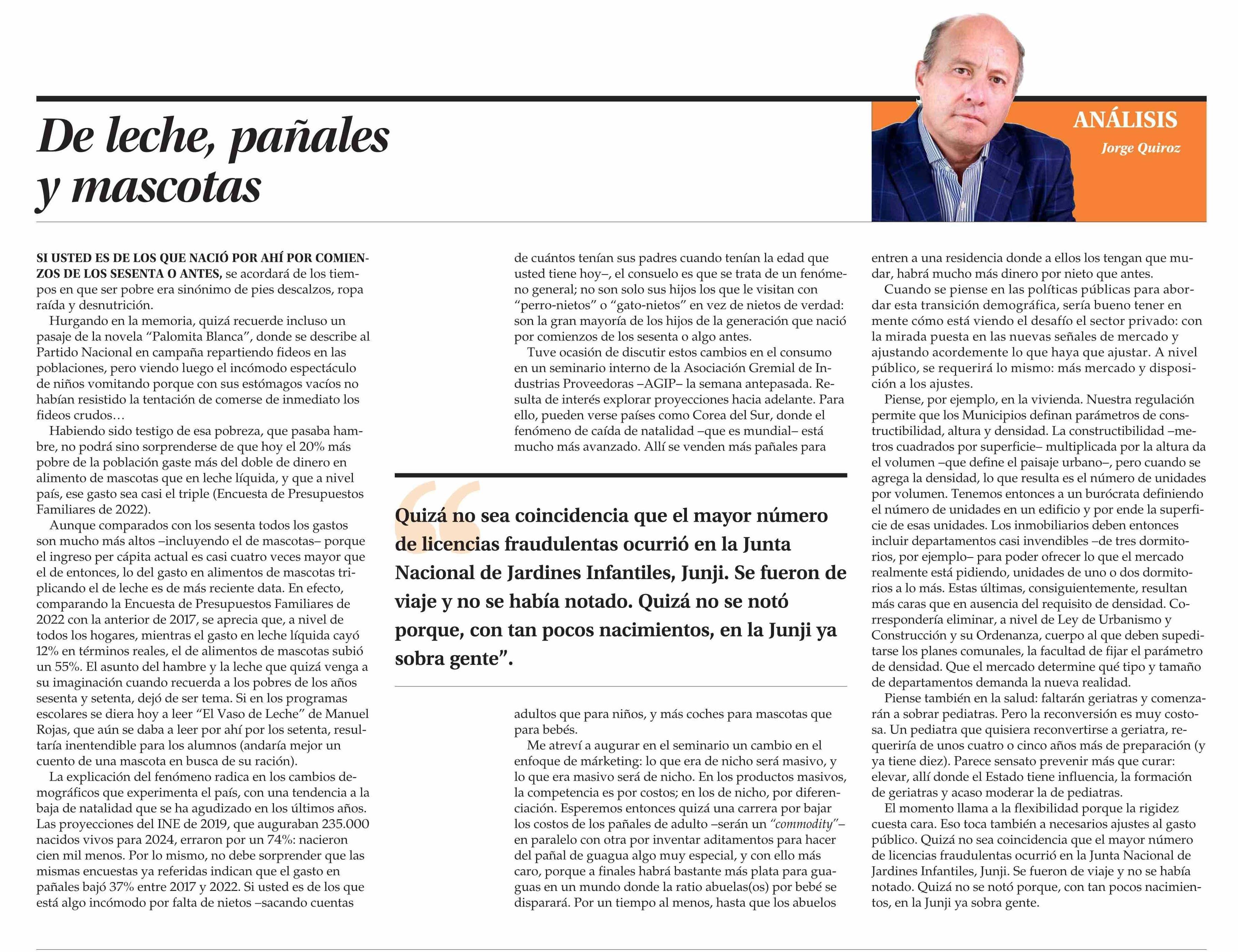 | Título: | COLUMNAS DE OPINIÓN: De leche, pañales y mascotas |