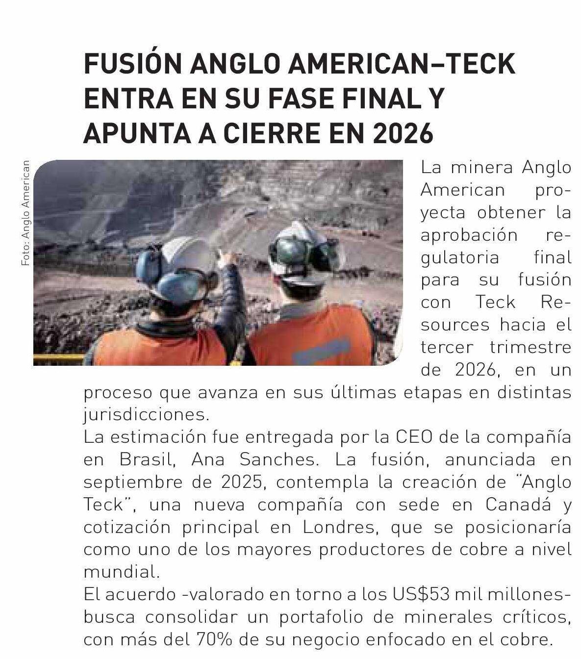 Título: FUSIÓN ANGLO AMERICAN-TECK ENTRA EN SU FASE FINAL Y APUNTA A CIERRE EN 2026