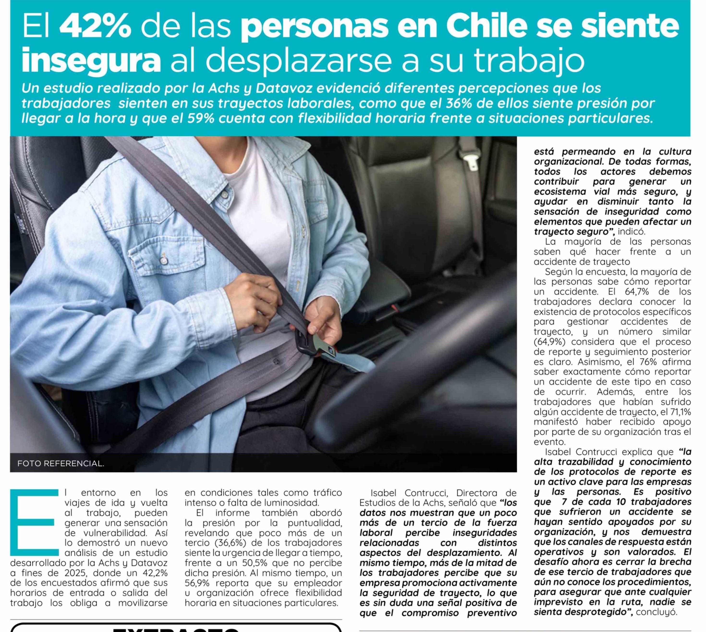 | Título: | El 42% de las personas en Chile se siente insegura al desplazarse a su trabajo |