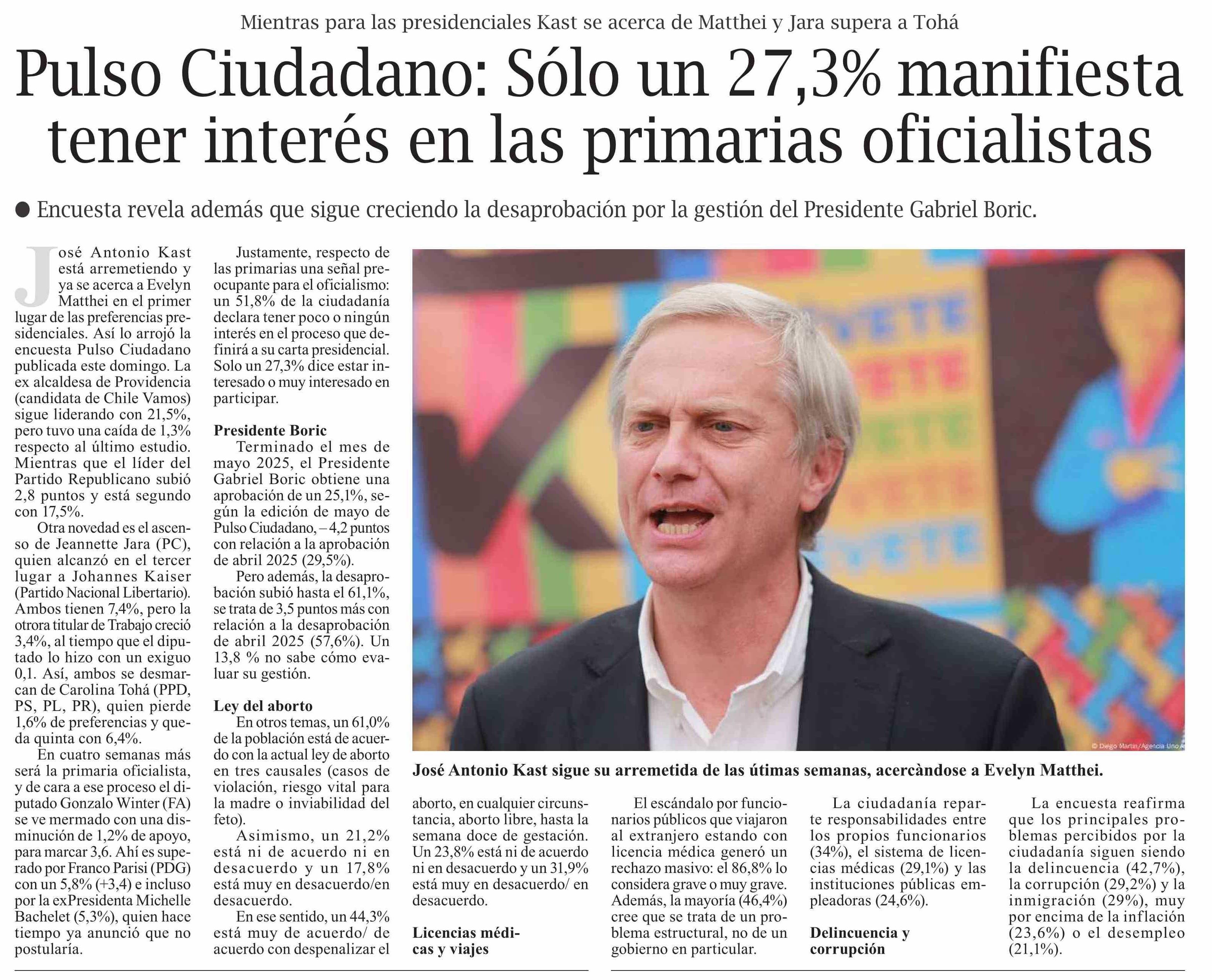 Pulso Ciudadano: Sólo un 27,3% manifiesta tener interés en las primarias oficialistas 02-06-2025 El Pingüino |
