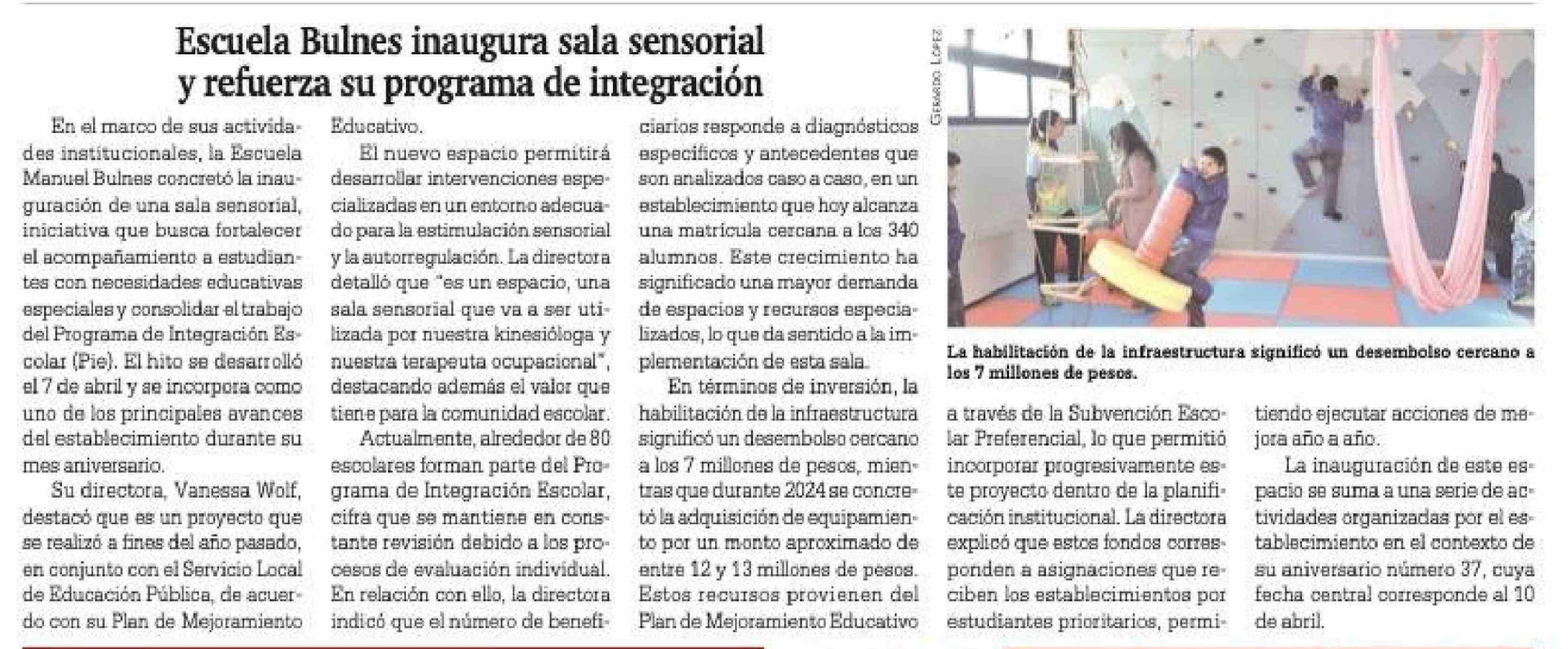 Título: Escuela Bulnes inaugura sala sensorial y refuerza su programa de integración