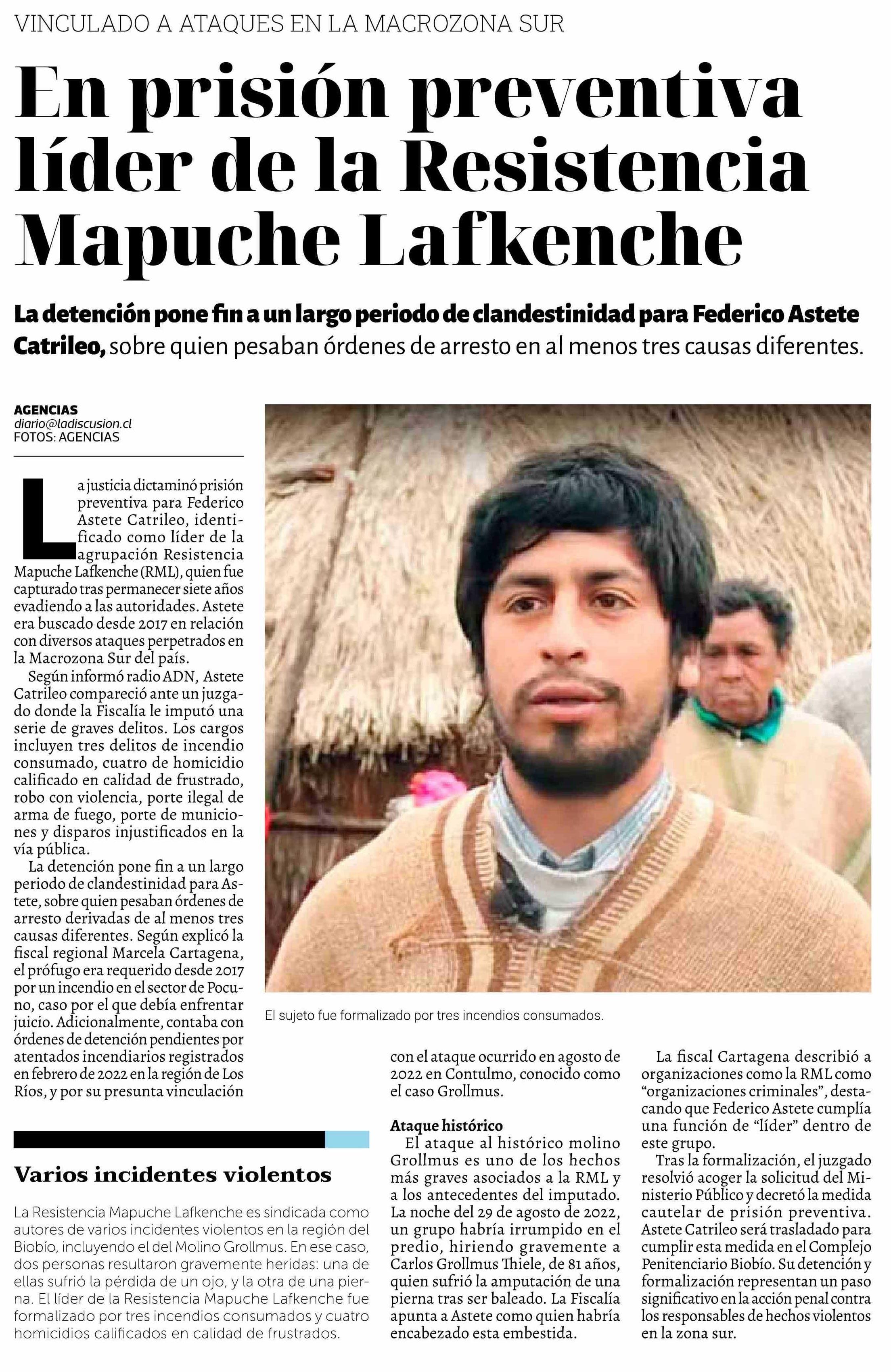 En prisión preventiva líder de la Resistencia Mapuche Lafkenche 26-04-2025 La Discusión |