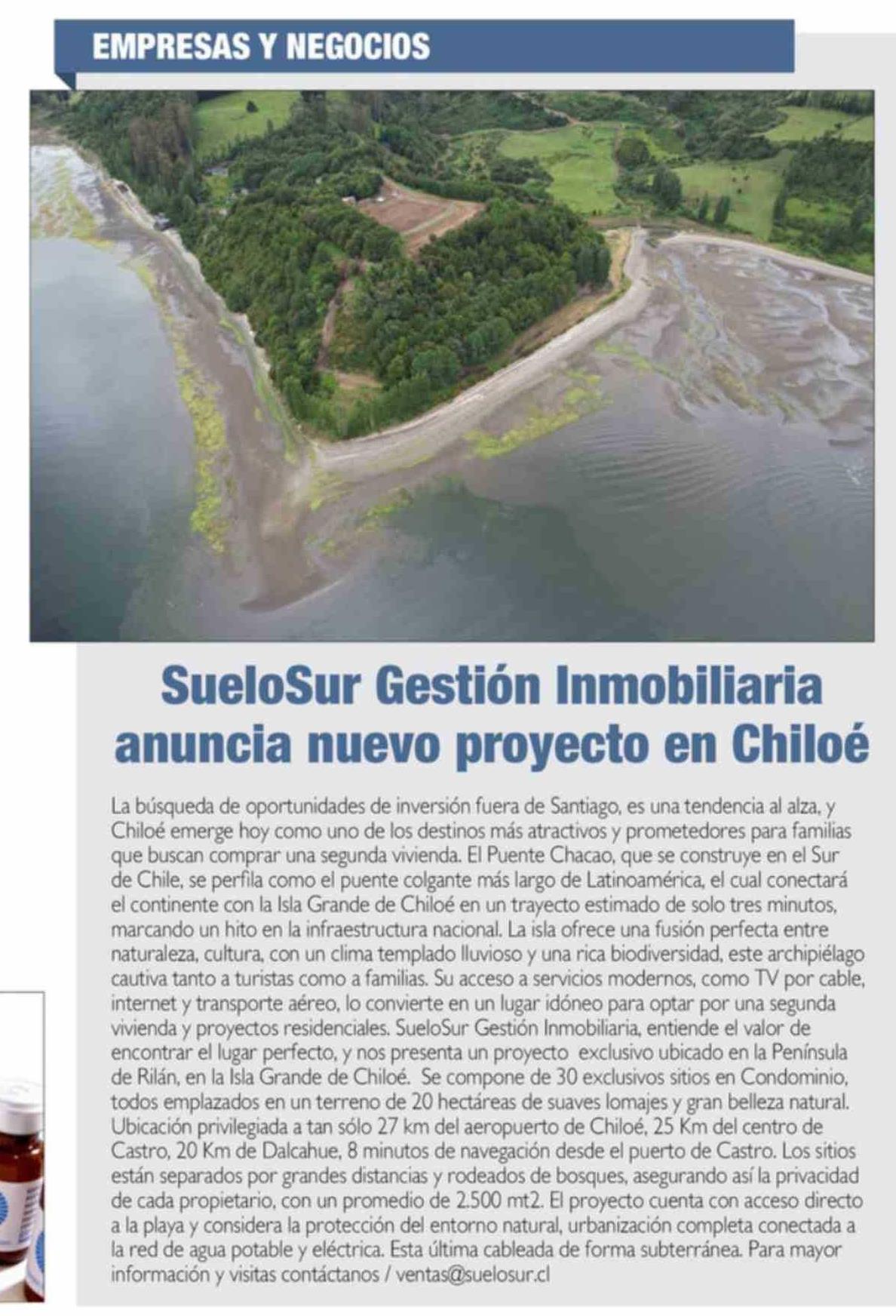 Título: SueloSur Gestión Inmobiliaria anuncia nuevo proyecto en Chiloé