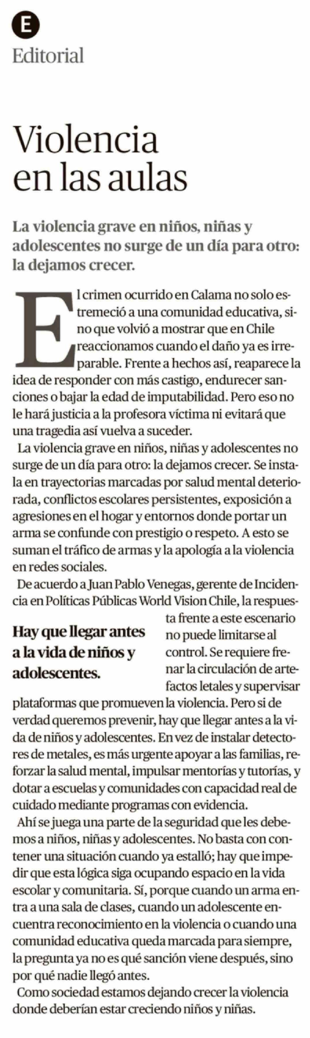 Editorial: Violencia en las aulas 21-04-2026 Crónica de Chillán |