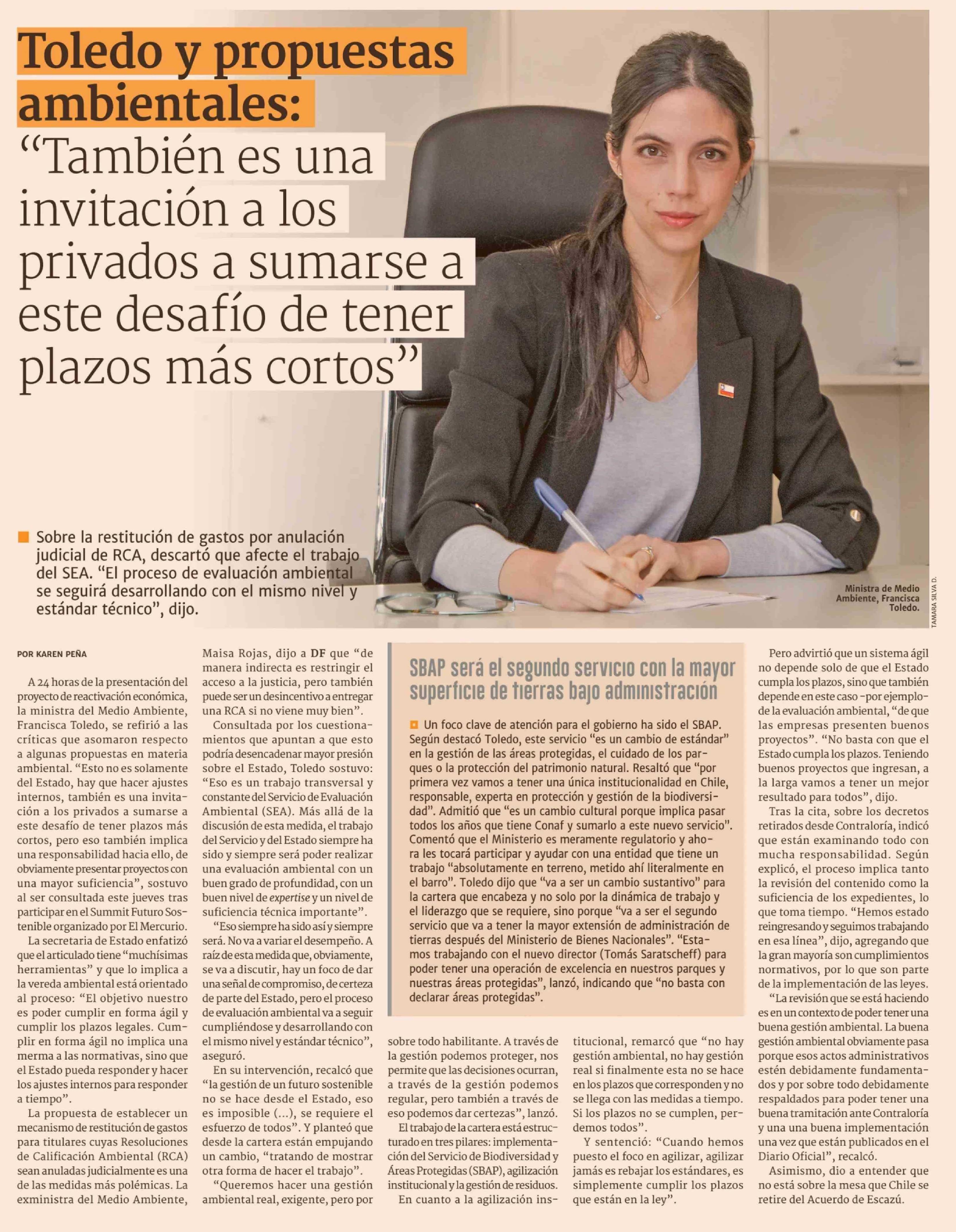 Toledo y propuestas ambientales: "También es una invitación a los privados a sumarse a este desafío de tener plazos más cortos" 24-04-2026 Diario Financiero |