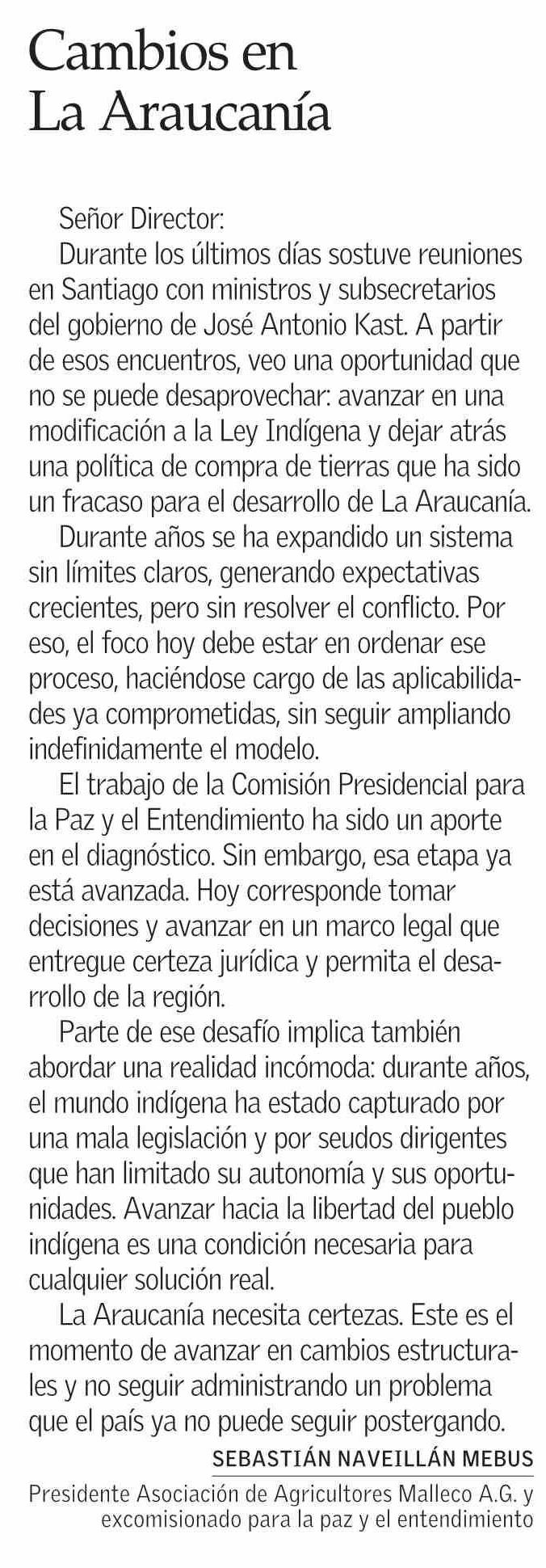 Cartas: Cambios en La Araucanía 02-04-2026 El Mercurio |