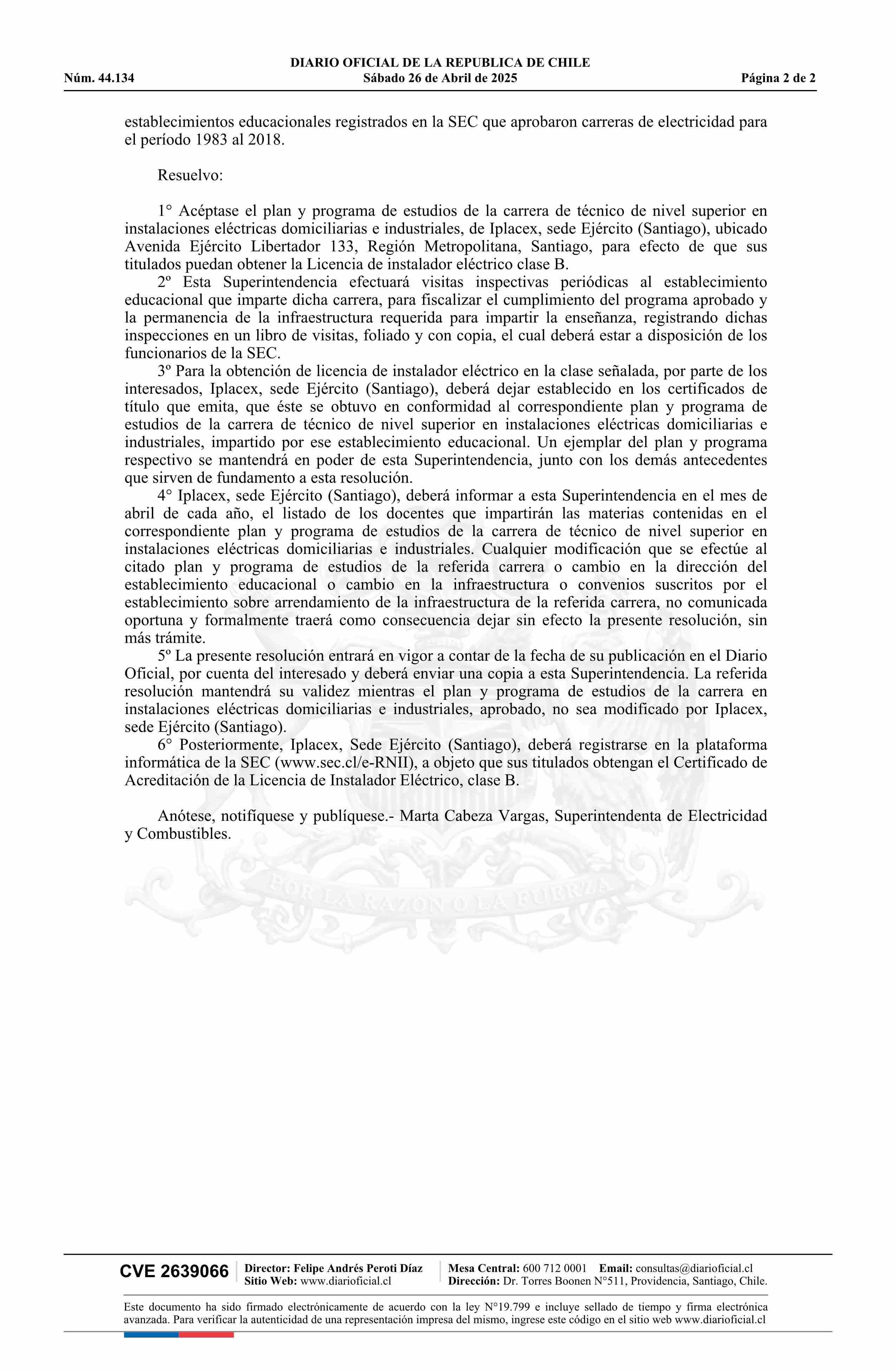 | Título: | Resolución exenta número 31.477, de 2025.- Aprueba plan y programa de estudios de la carrera de Técnico de nivel superior en instalaciones eléctricas domiciliarias e industriales del Instituto Profesional Latinoamericano de Comercio Exterior, sede Ejército, Santiago |