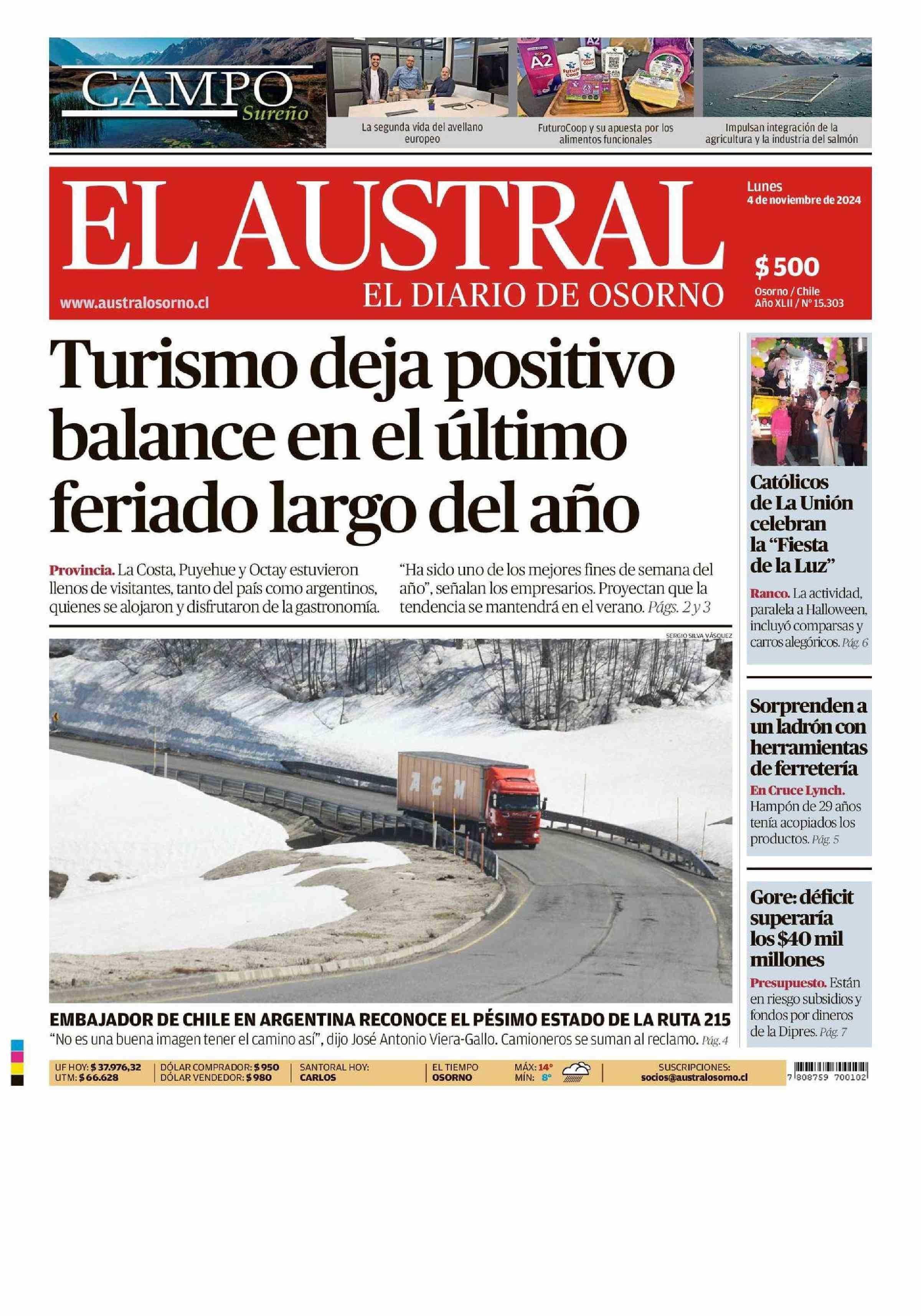 PORTADA EL AUSTRAL DE OSORNO CHILE 04-11-2024 El Austral de Osorno |