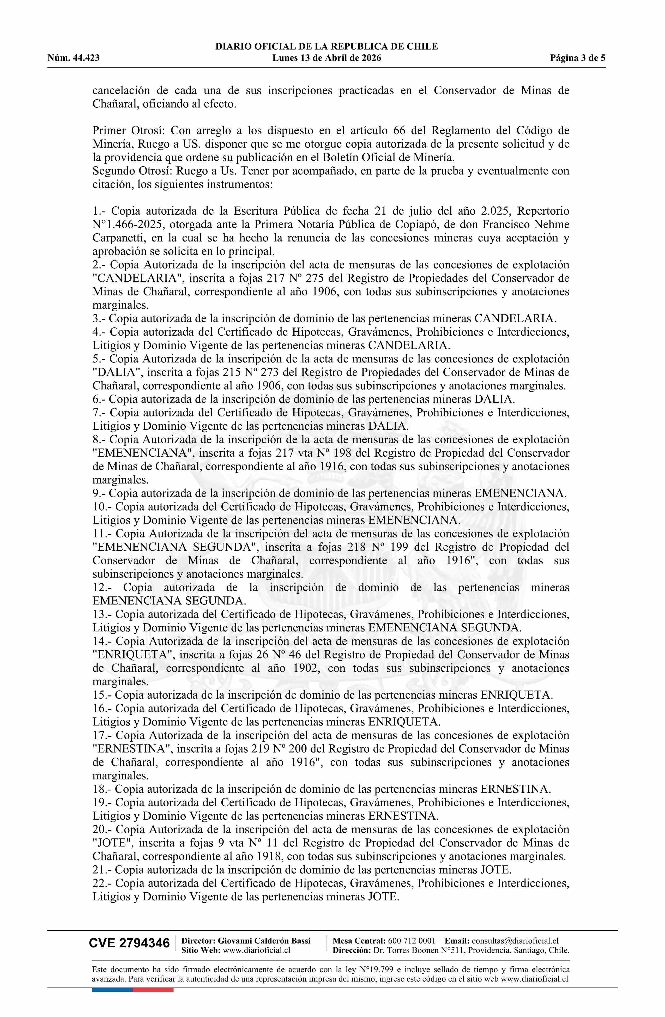 13-04-2026 DIARIO OFICIAL CHILE - BOLETÍN OFICIAL DE MINERÍA