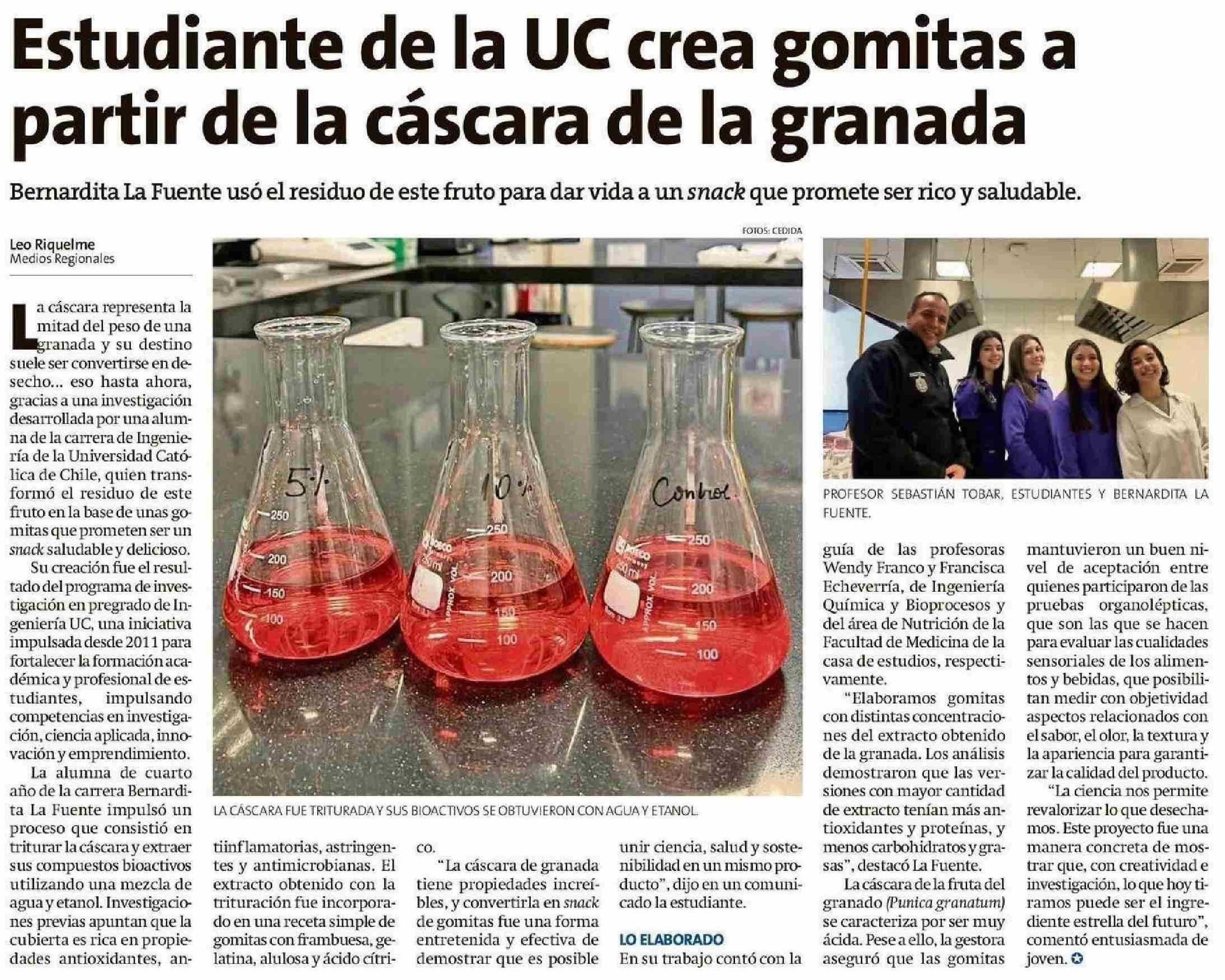 | Título: | Estudiante de la UC crea gomitas a partir de la cáscara de la granada |