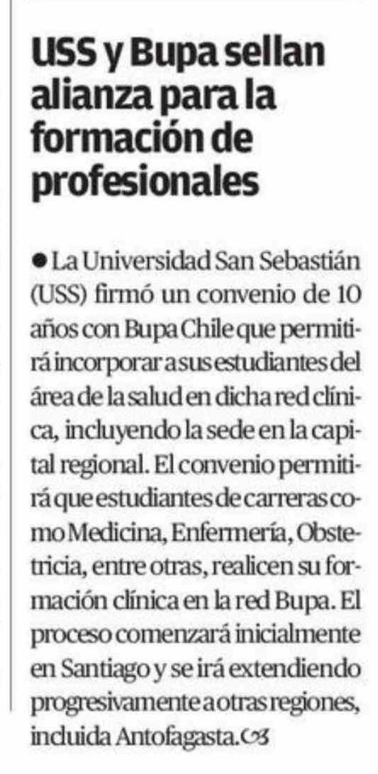 USS y Bupa sellan alianza para la formación de profesionales 19-01-2026 El Mercurio de Antofagasta |