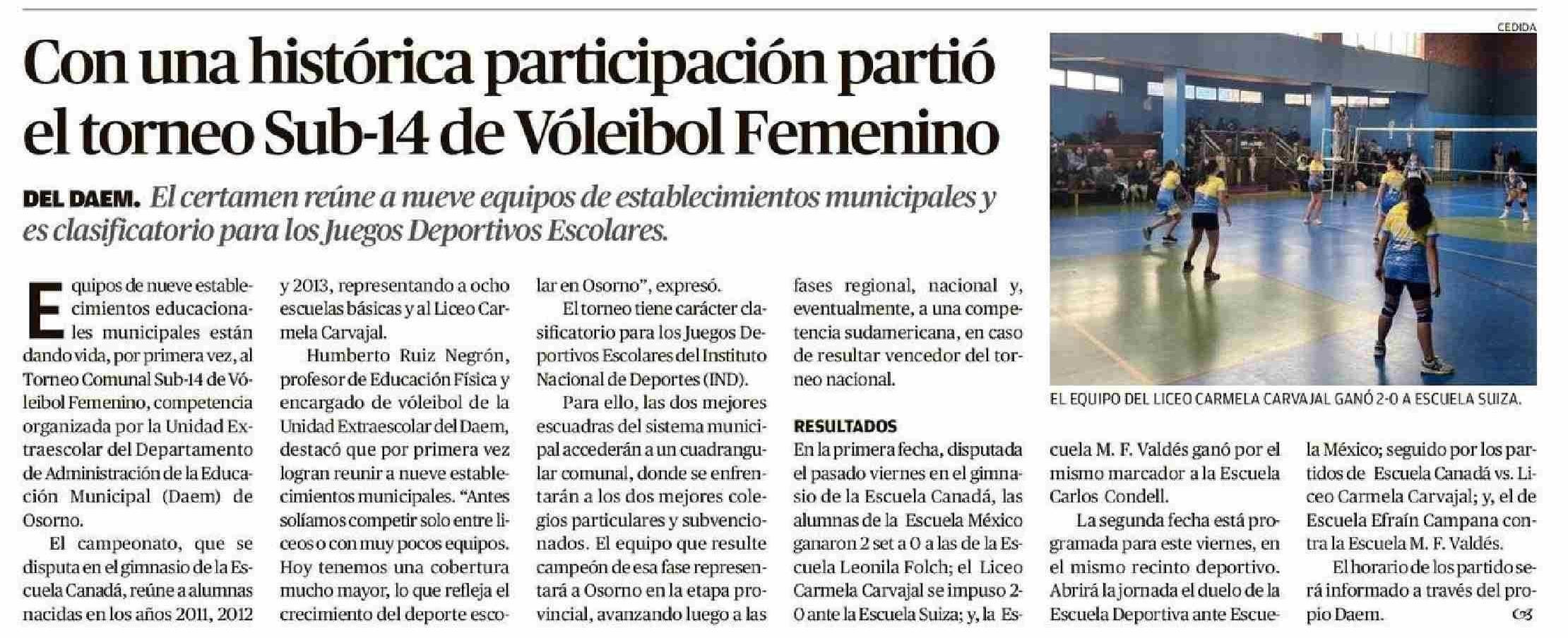Con una histórica participación partió el torneo Sub-14 de Vóleibol Femenino 28-05-2025 El Austral de Osorno |
