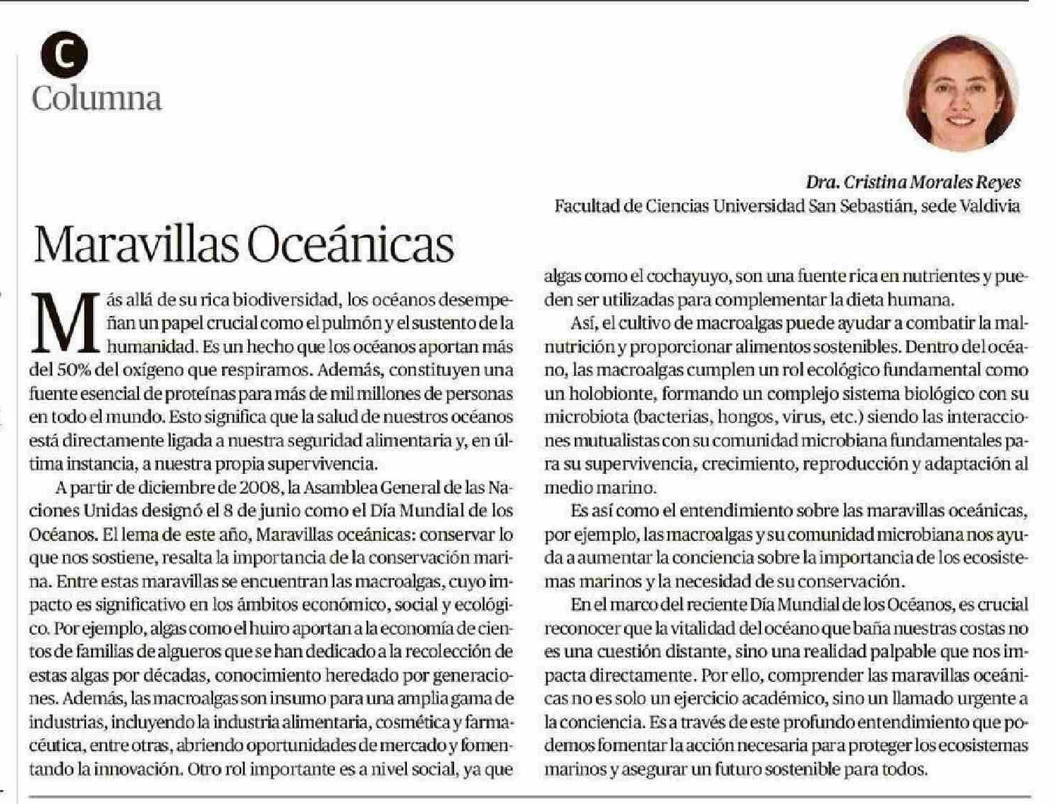 Columnas de Opinión: Maravillas Oceánicas 13-06-2025 Diario Austral Región de Los Ríos |