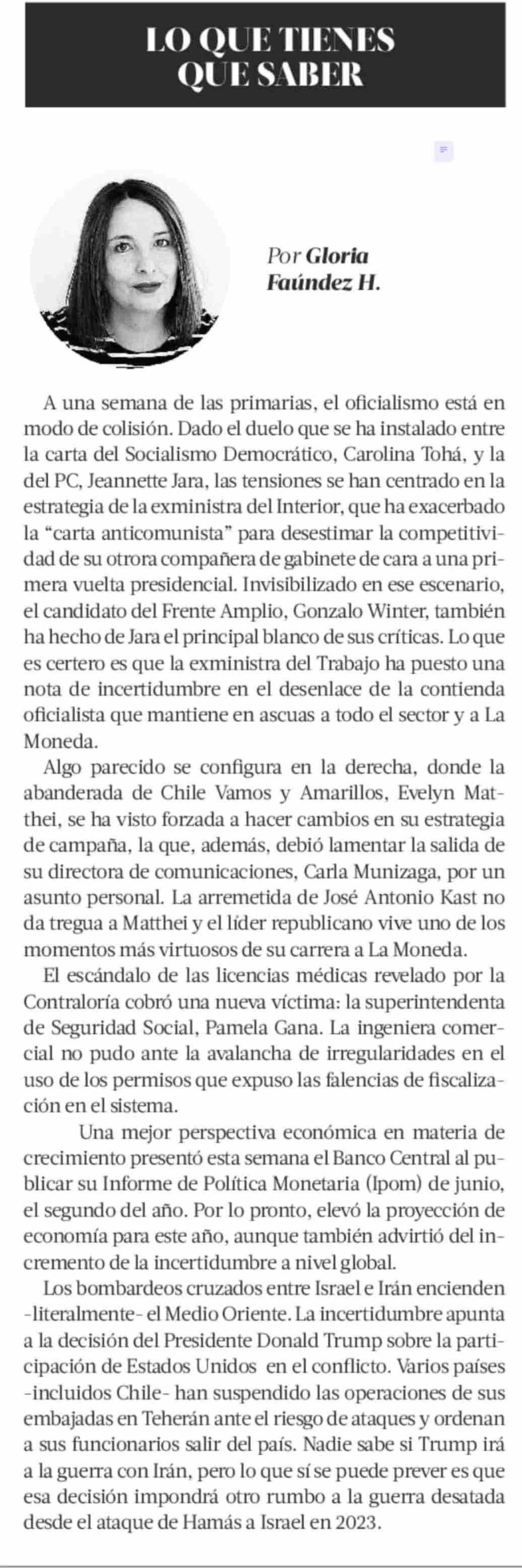 Columnas de Opinión: LO QUE TIENES QUE SABER 22-06-2025 La Tercera |