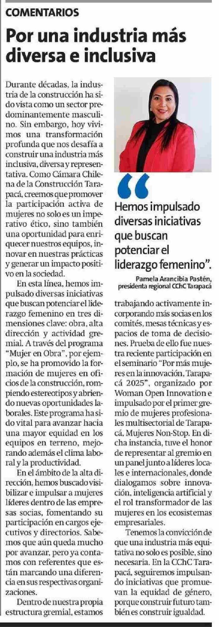 Por una industria más diversa e inclusiva 11-06-2025 La Estrella de Iquique |