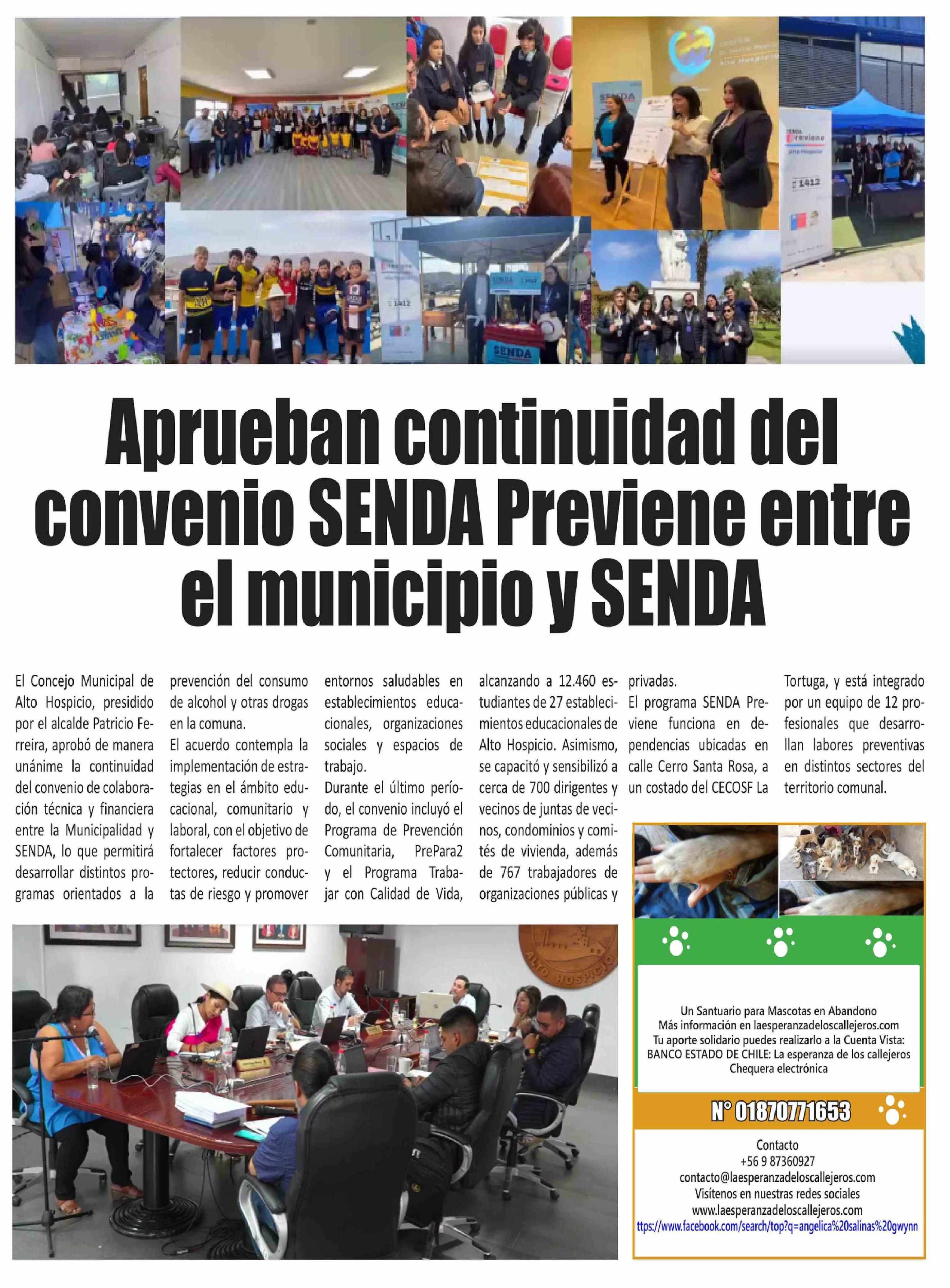 Aprueban continuidad del convenio SENDA Previene entre el municipio y SENDA 19-02-2026 El Longino |