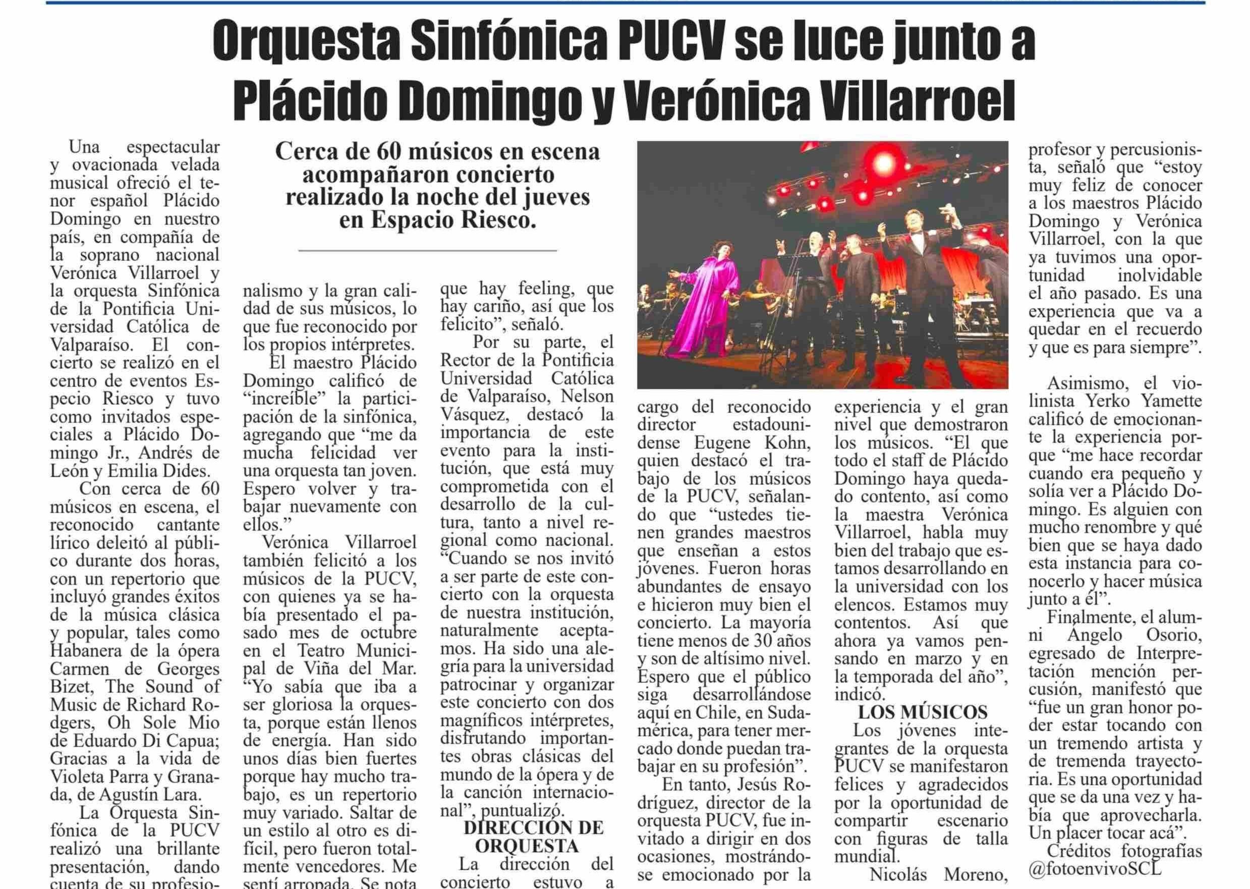 | Título: | Orquesta sinfónica PUCV se luce junto a Plácido Domingo y Verónica Villarroel |