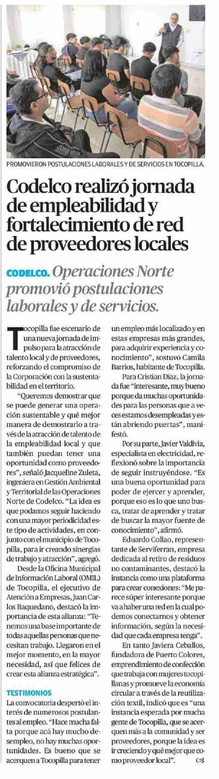 Título: Codelco realizó jornada de empleabilidad y fortalecimiento de red de proveedores locales