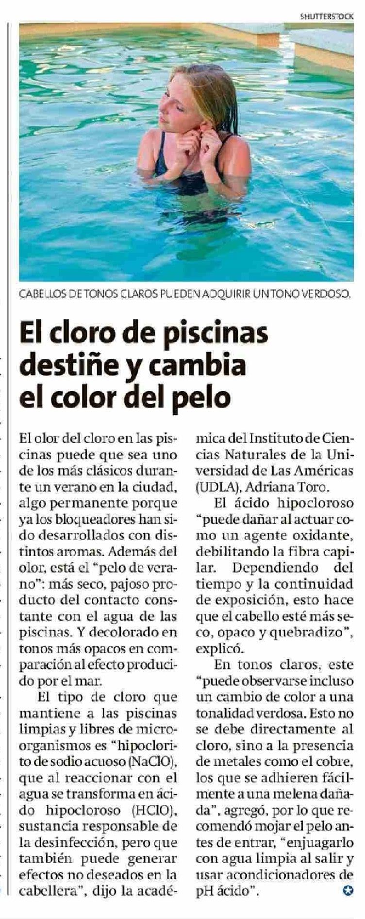 | Título: | El cloro de piscinas destiñe y cambia el color del pelo |