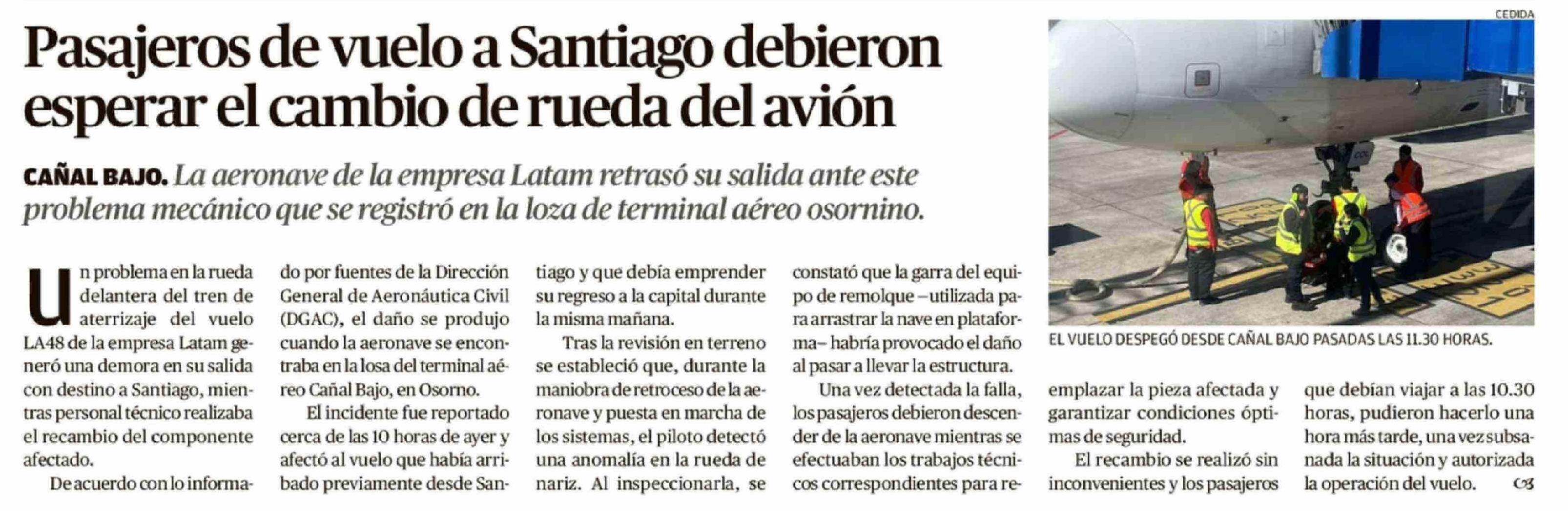 Pasajeros de vuelo a Santiago debieron esperar el cambio de rueda del avión 25-02-2026 El Austral de Osorno |