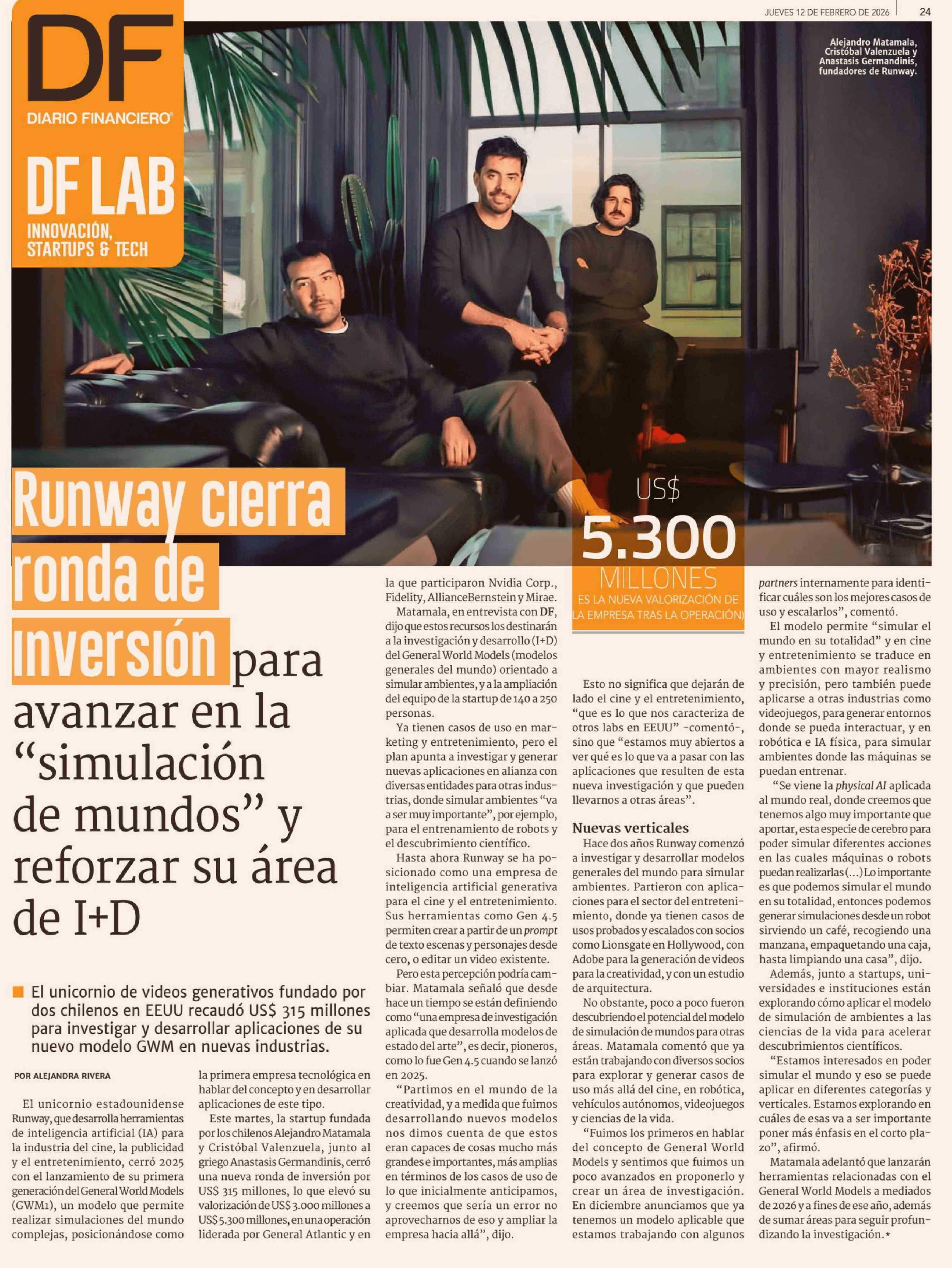 Título: Runway cierra ronda de inversion para avanzar en la "simulación de mundos" y reforzar su área de I+D