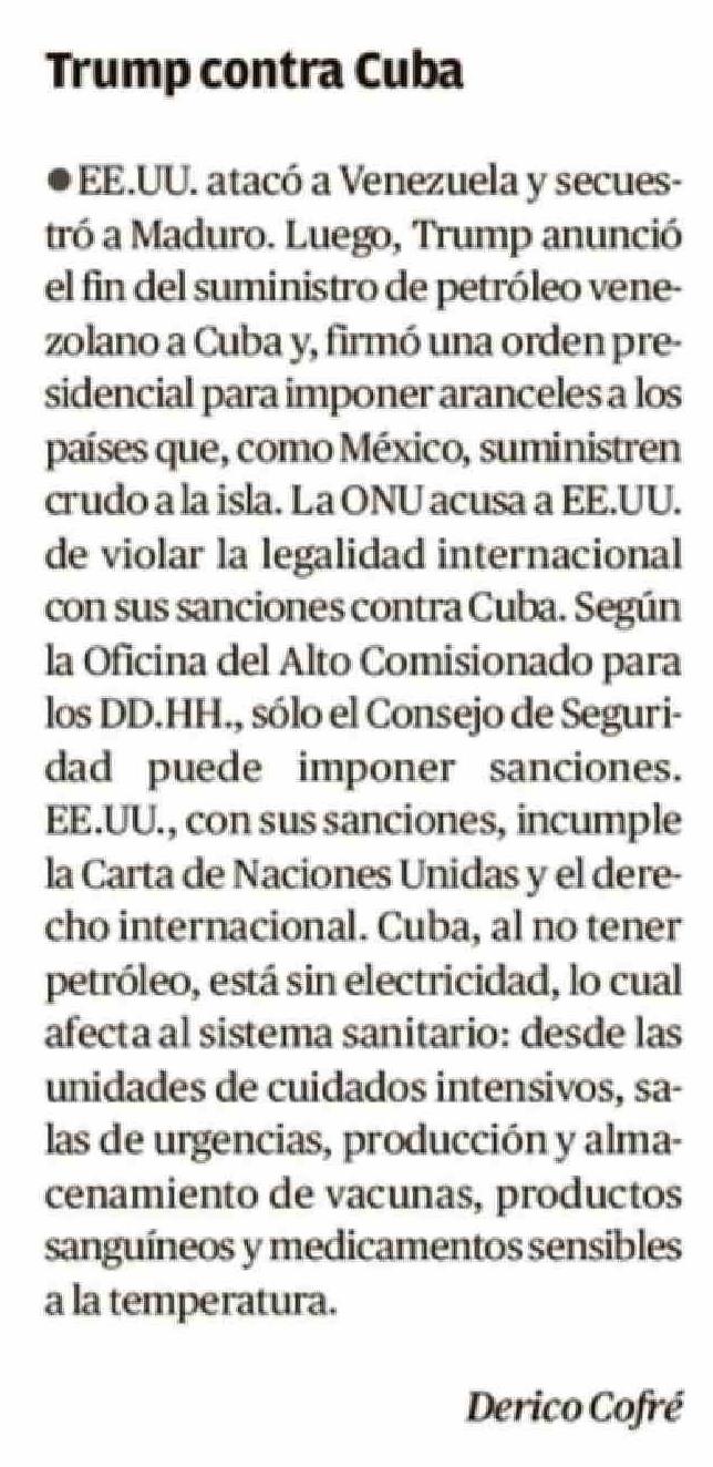 Cartas: Trump contra Cuba 17-02-2026 El Llanquihue |
